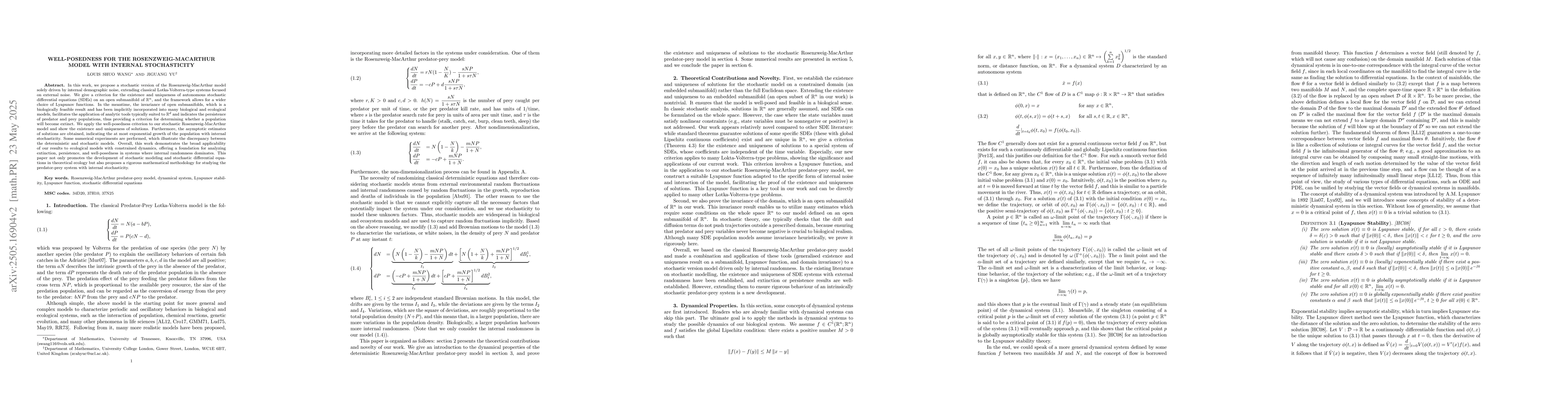 This research distinguishes itself by focusing on internal stochasticity in the Rosenzweig-MacArthur model, providing a rigorous mathematical methodology for studying predator-prey systems with such internal randomness.