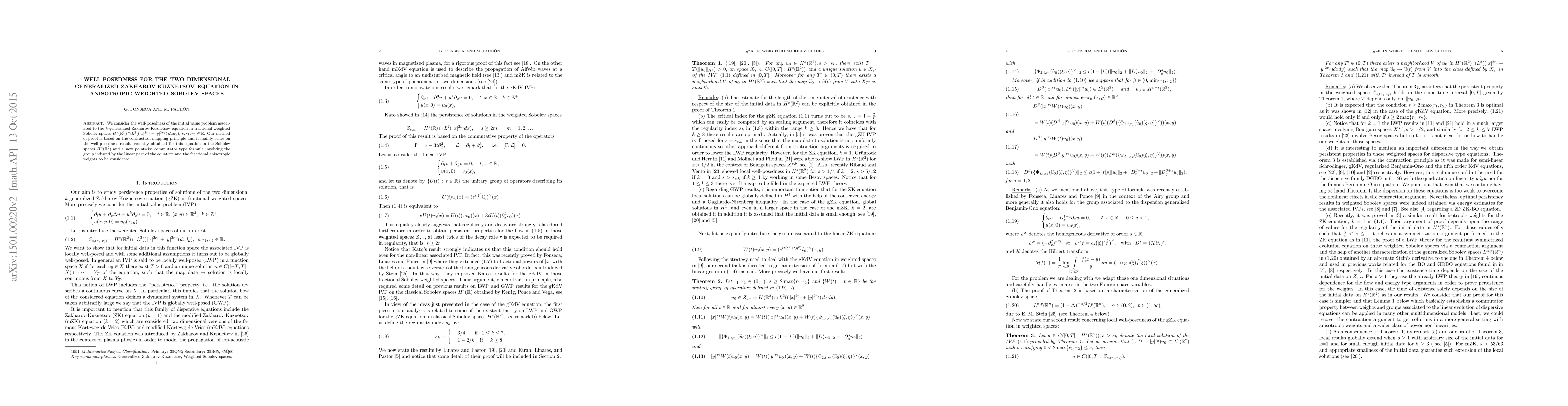 We consider the well-posedness of the initial value problem associated to the k-generalized Zakharov-Kuznetsov equation in fractional weighted Sobolev spaces. Our method of proof is based on the contraction mapping principle and it mainly relies on the well-posedness results recently obtained for this equation in the Sobolev spaces H^s(\R^2) and a new pointwise commutator type formula involving the group induced by the linear part of the equation and the fractional anisotropic weights to be considered