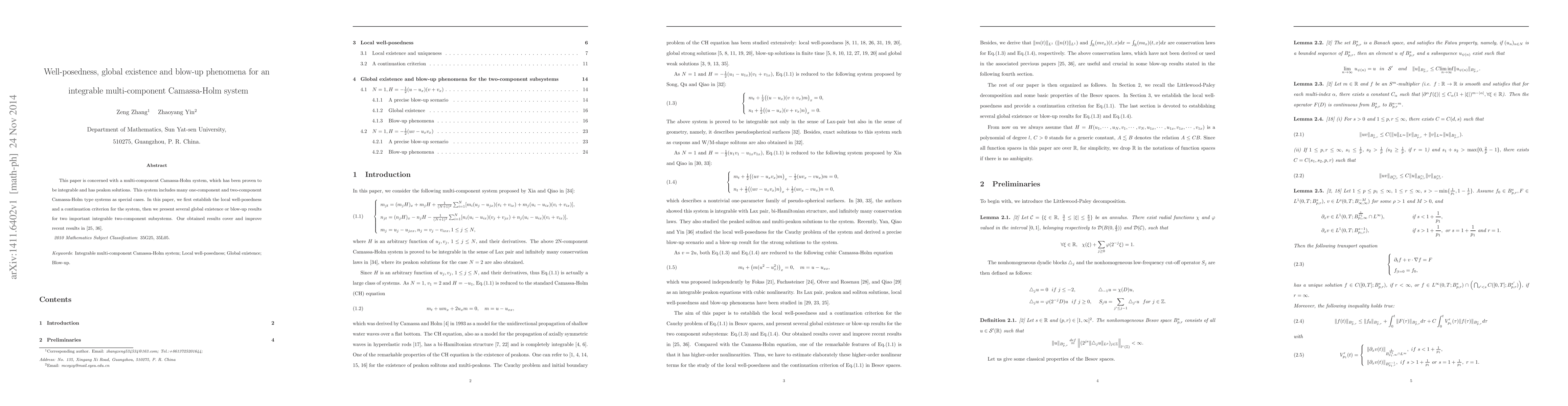 This paper investigates a multi-component Camassa-Holm system, establishing local well-posedness and global existence or blow-up results for specific subsystems, improving upon recent findings in existing literature.