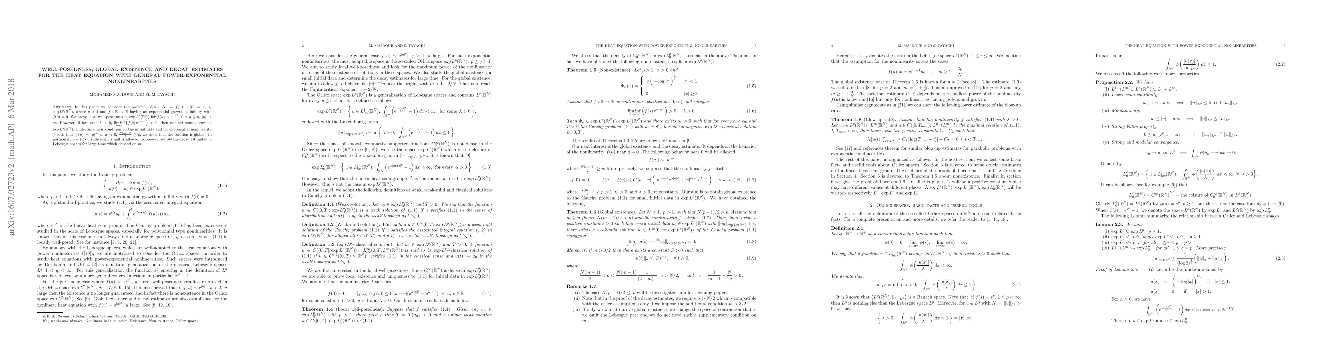 In this paper we consider the problem: $\partial_{t} u- \Delta u=f(u),\;