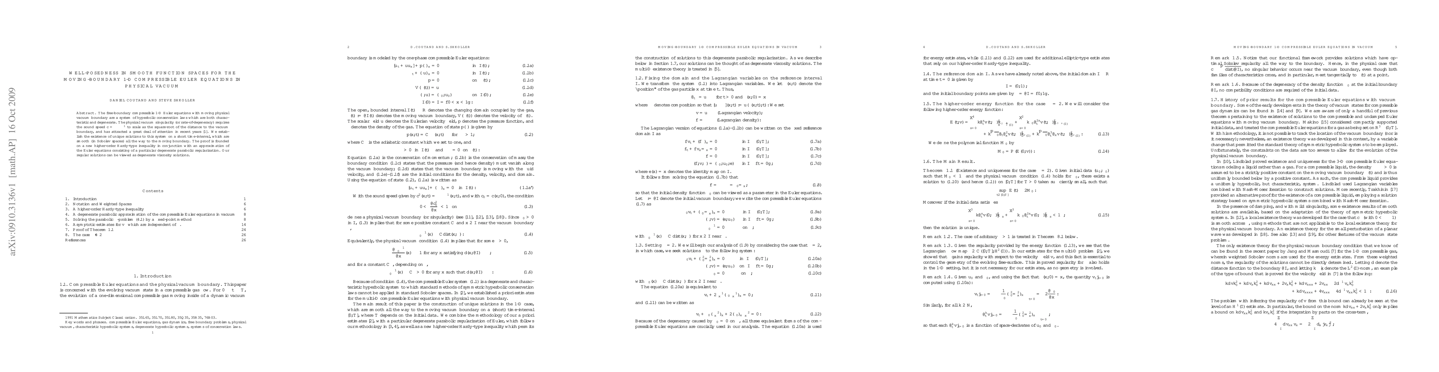 The free-boundary compressible 1-D Euler equations with moving physical vacuum boundary are a system of hyperbolic conservation laws which are both characteristic and degenerate. The physical vacuum singularity (or rate-of-degeneracy) requires the sound speed $c= \gamma \rho^{\gamma -1}$ to scale as the square-root of the distance to the vacuum boundary, and has attracted a great deal of attention in recent years. We establish the existence of unique solutions to this system on a short time-interval, which are smooth (in Sobolev spaces) all the way to the moving boundary. The proof is founded on a new higher-order Hardy-type inequality in conjunction with an approximation of the Euler equations consisting of a particular degenerate parabolic regularization. Our regular solutions can be viewed as degenerate viscosity solutions.