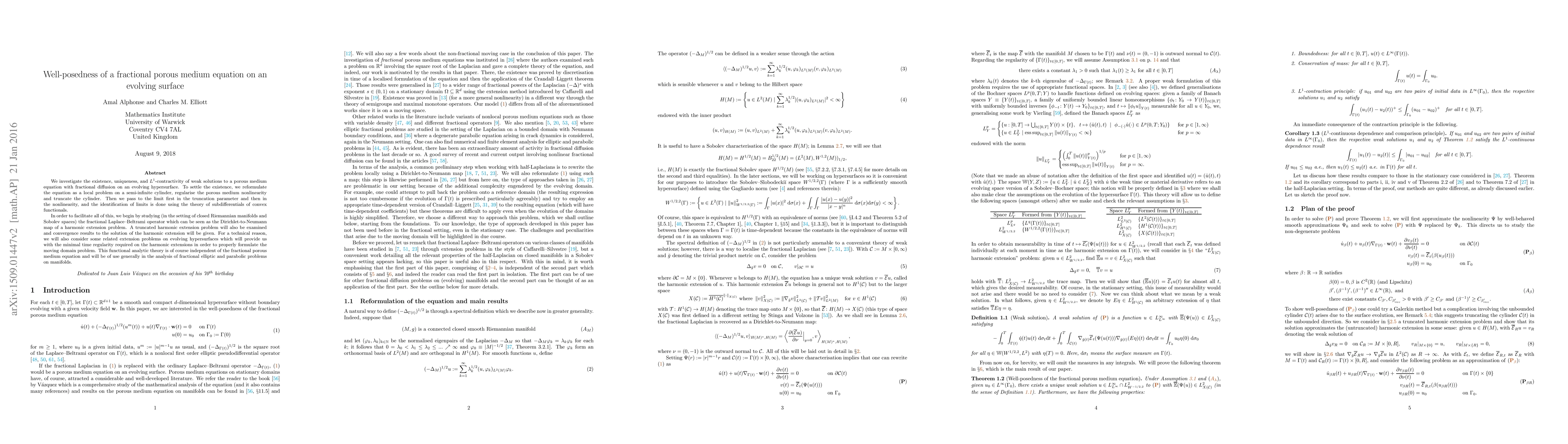 This paper establishes the well-posedness of a fractional porous medium equation on an evolving hypersurface by proving existence, uniqueness, and $L^1$-contractivity of weak solutions. The authors reformulate the equation, regularize the nonlinearity, and utilize the theory of subdifferentials of convex functionals to identify limits and ensure proper formulation of the moving domain problem.