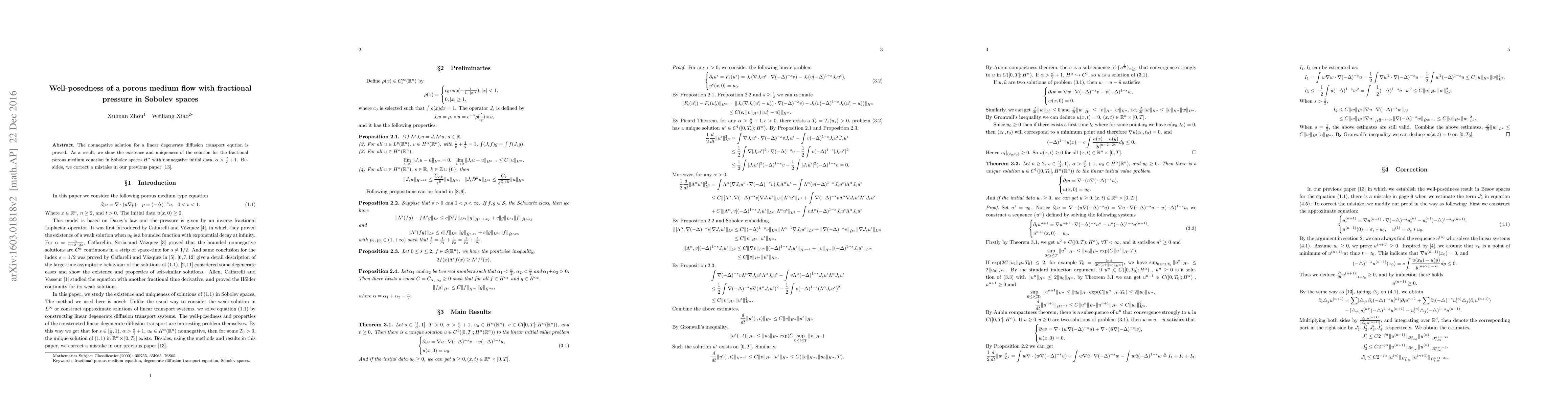 The paper proves the existence and uniqueness of a solution to the fractional porous medium equation in Sobolev spaces for nonnegative initial data, with a correction to a previous mistake.