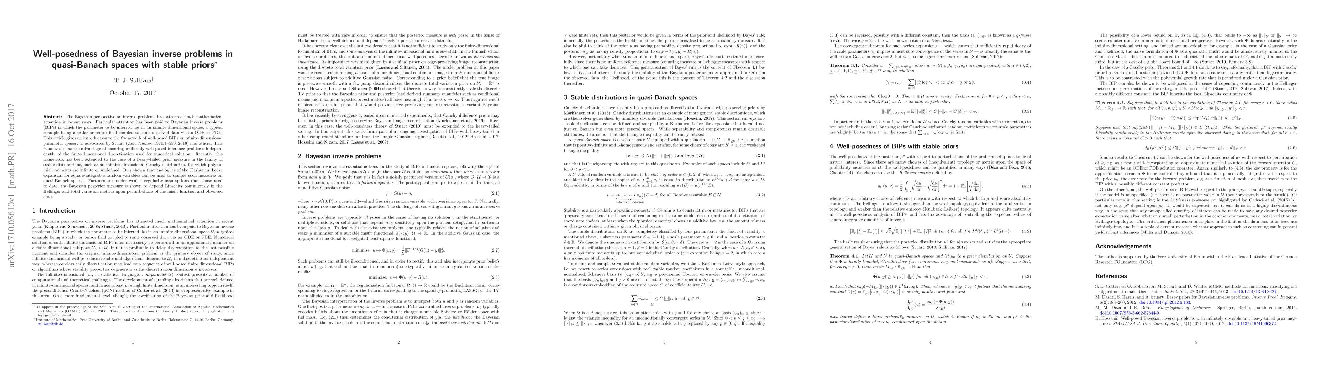 The Bayesian perspective on inverse problems has attracted much mathematical attention in recent years. Particular attention has been paid to Bayesian inverse problems (BIPs) in which the parameter to be inferred lies in an infinite-dimensional space, a typical example being a scalar or tensor field coupled to some observed data via an ODE or PDE. This article gives an introduction to the framework of well-posed BIPs in infinite-dimensional parameter spaces, as advocated by Stuart (Acta Numer. 19:451--559, 2010) and others. This framework has the advantage of ensuring uniformly well-posed inference problems independently of the finite-dimensional discretisation used for numerical solution. Recently, this framework has been extended to the case of a heavy-tailed prior measure in the family of stable distributions, such as an infinite-dimensional Cauchy distribution, for which polynomial moments are infinite or undefined. It is shown that analogues of the Karhunen--Lo\`eve expansion for square-integrable random variables can be used to sample such measures on quasi-Banach spaces. Furthermore, under weaker regularity assumptions than those used to date, the Bayesian posterior measure is shown to depend Lipschitz continuously in the Hellinger and total variation metrics upon perturbations of the misfit function and observed data.