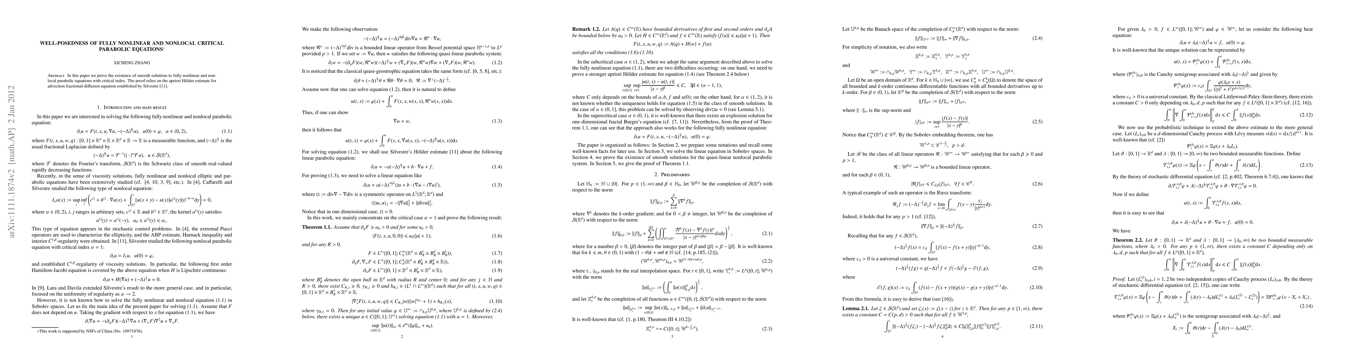 This paper establishes the existence of smooth solutions for fully nonlinear and nonlocal parabolic equations with critical indices, leveraging the a priori H\"older estimate for advection fractional-diffusion equations developed by Silvestre.