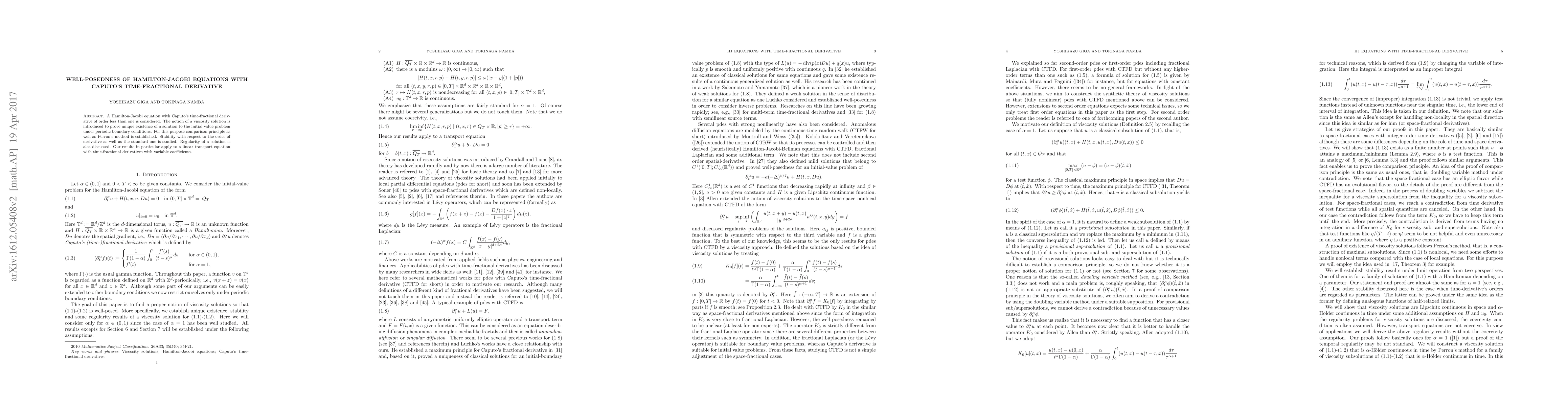 This paper investigates the well-posedness of Hamilton-Jacobi equations incorporating Caputo's time-fractional derivatives. It establishes the existence and uniqueness of viscosity solutions under periodic boundary conditions, employing comparison principles and Perron's method.