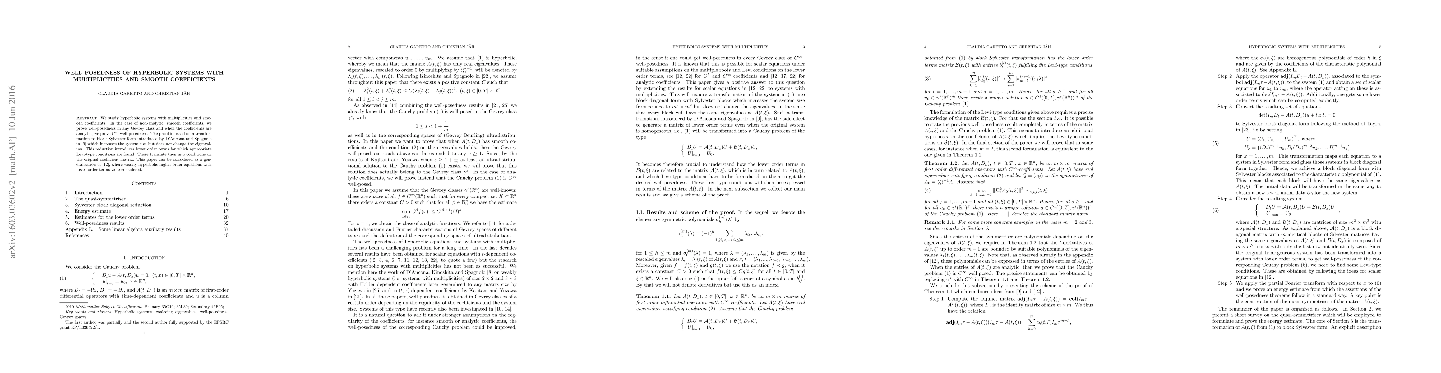 This paper proves well-posedness for hyperbolic systems with smooth coefficients, showing $C^\infty$ well-posedness for analytic coefficients and Gevrey class well-posedness for non-analytic coefficients. The proof leverages a transformation to block Sylvester form to manage the system's complexity.