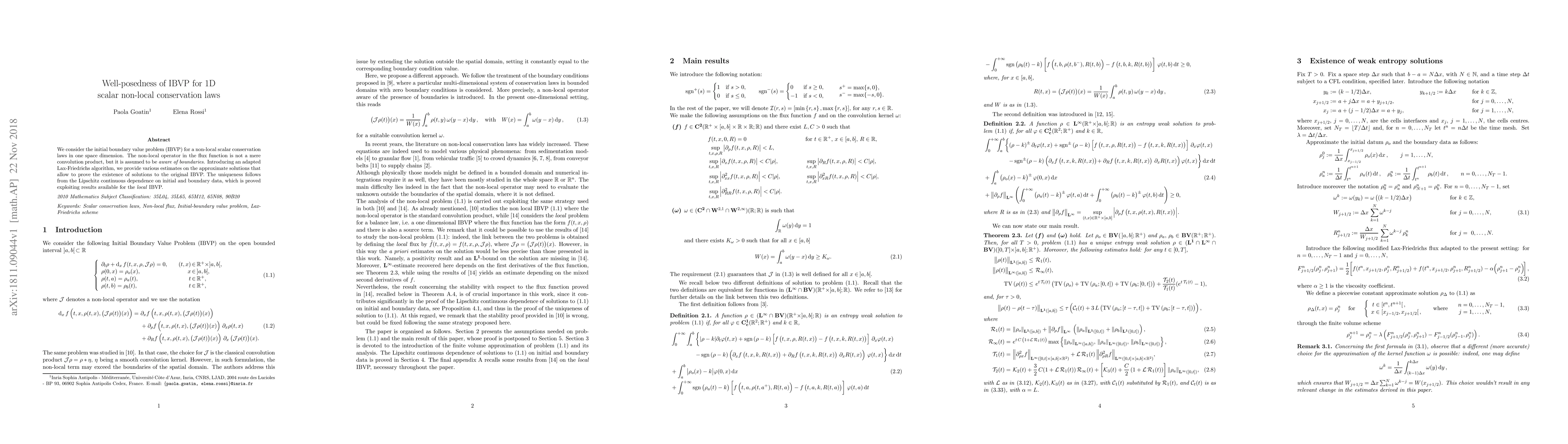 This paper investigates the well-posedness of the initial boundary value problem for 1D scalar non-local conservation laws, introducing an adapted Lax-Friedrichs algorithm to prove existence and uniqueness through estimates and Lipschitz continuity.