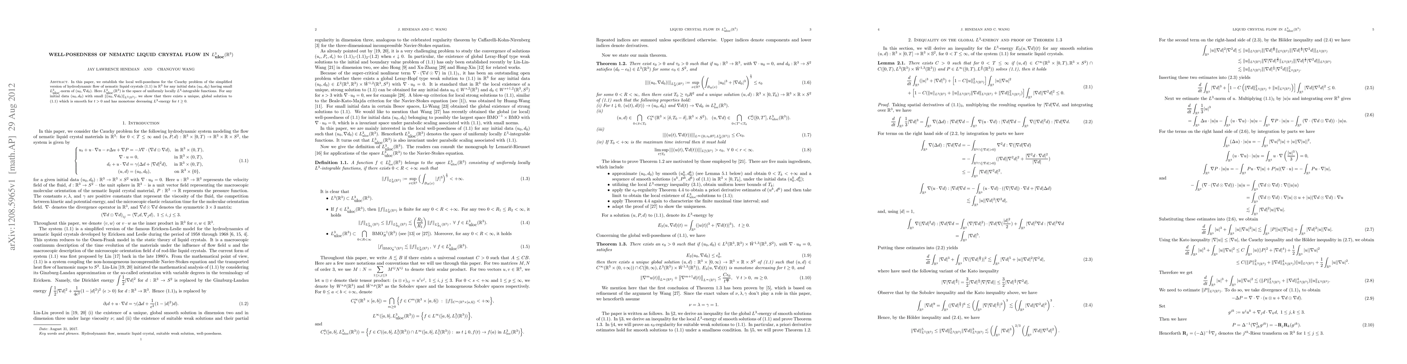 This paper establishes local well-posedness for a simplified hydrodynamic flow model of nematic liquid crystals in $\mathbb{R}^3$ with initial data in $L^3_{\hbox{uloc}}(\mathbb{R}^3)$. It proves the existence of a unique, globally smooth solution with decreasing $L^3$-energy over time.