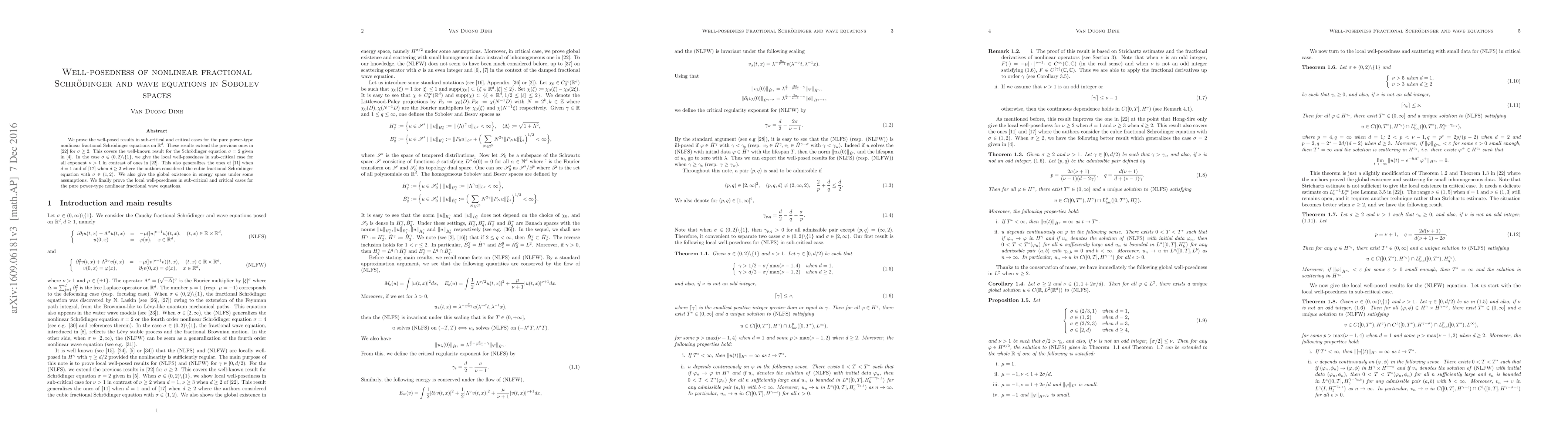 This paper proves well-posedness results for nonlinear fractional Schrödinger and wave equations in Sobolev spaces, extending previous work to cover a broader range of exponents and dimensions. It establishes local well-posedness for fractional powers between 0 and 2, excluding 1, and provides global existence under certain conditions.