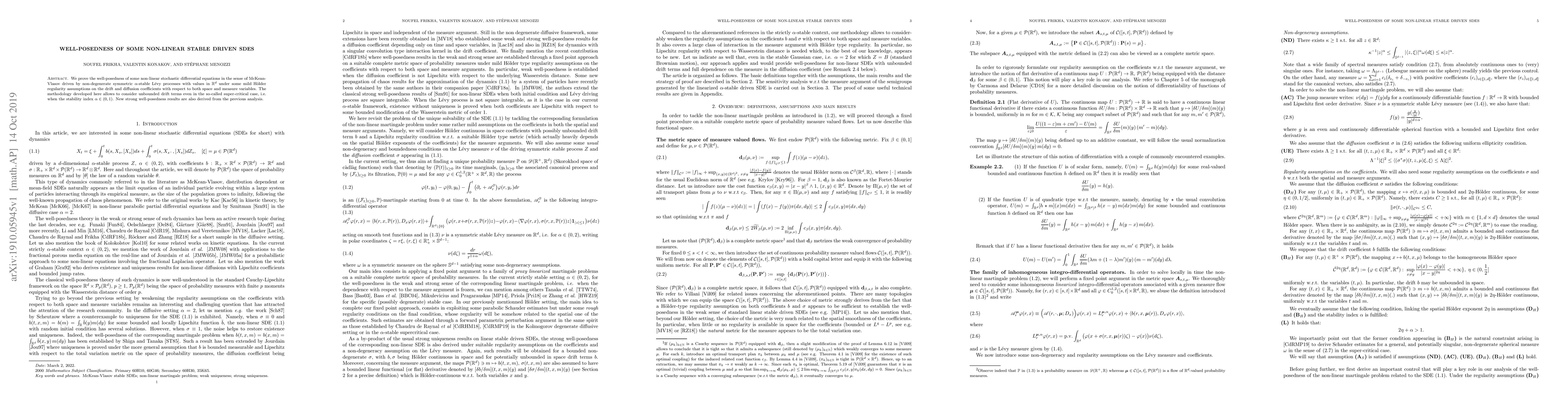 We prove the well-posedness of some non-linear stochastic differential equations in the sense of McKean-Vlasov driven by non-degenerate symmetric $\alpha$-stable L\'evy processes with values in $R^d$ under some mild H{\"o}lder regularity assumptions on the drift and diffusion coefficients with respect to both space and measure variables. The methodology developed here allows to consider unbounded drift terms even in the so-called super-critical case, i.e. when the stability index $\alpha \in (0, 1)$. New strong well-posedness results are also derived from the previous analysis.