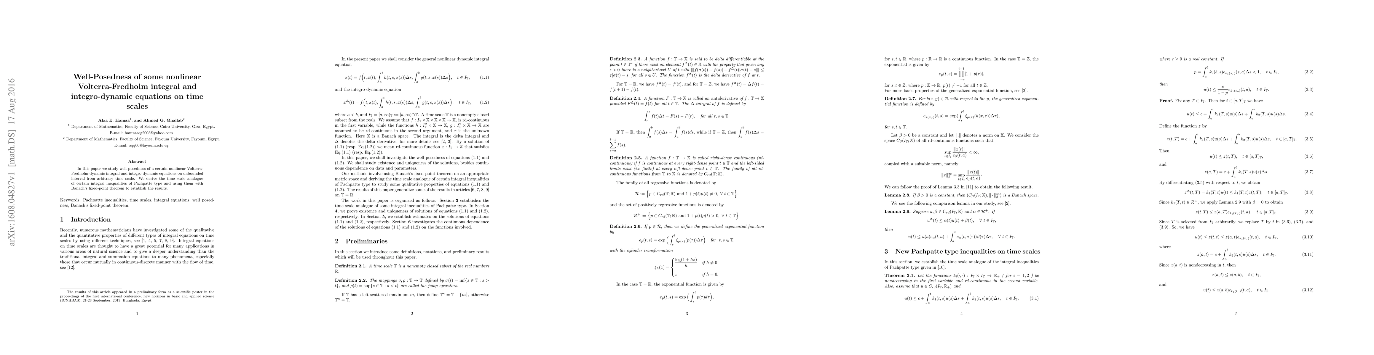 This paper investigates the well-posedness of nonlinear Volterra-Fredholm integral and integro-dynamic equations on time scales, using integral inequalities to establish results via Banach's fixed-point theorem.