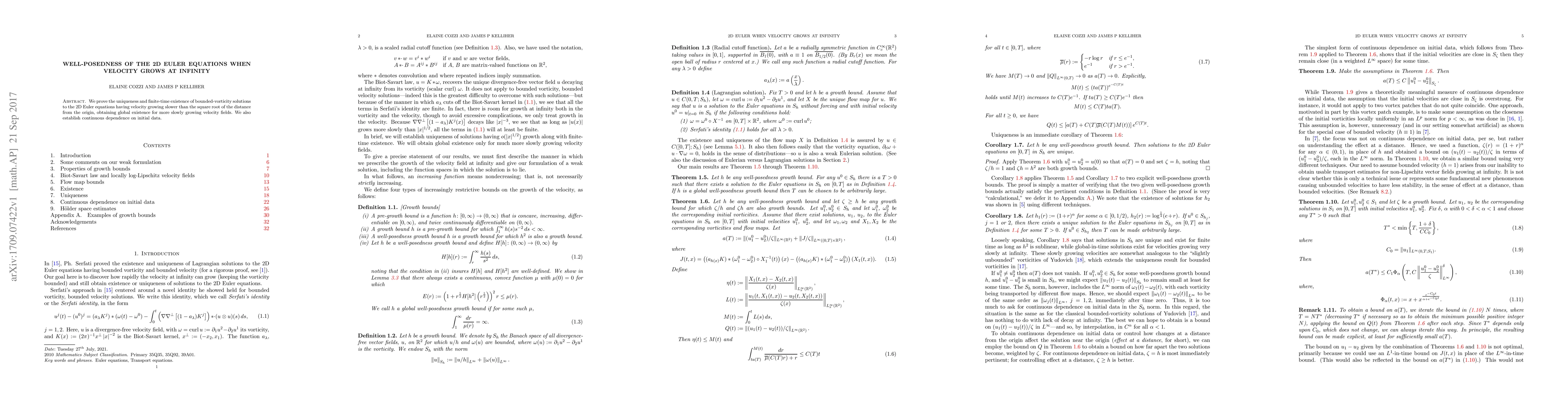 This research proves that under certain conditions, solutions to the 2D Euler equations exist and are unique, even when velocities grow as one approaches infinity, but at a rate slower than the square root of the distance from the origin. It also confirms that these solutions depend continuously on the initial conditions.