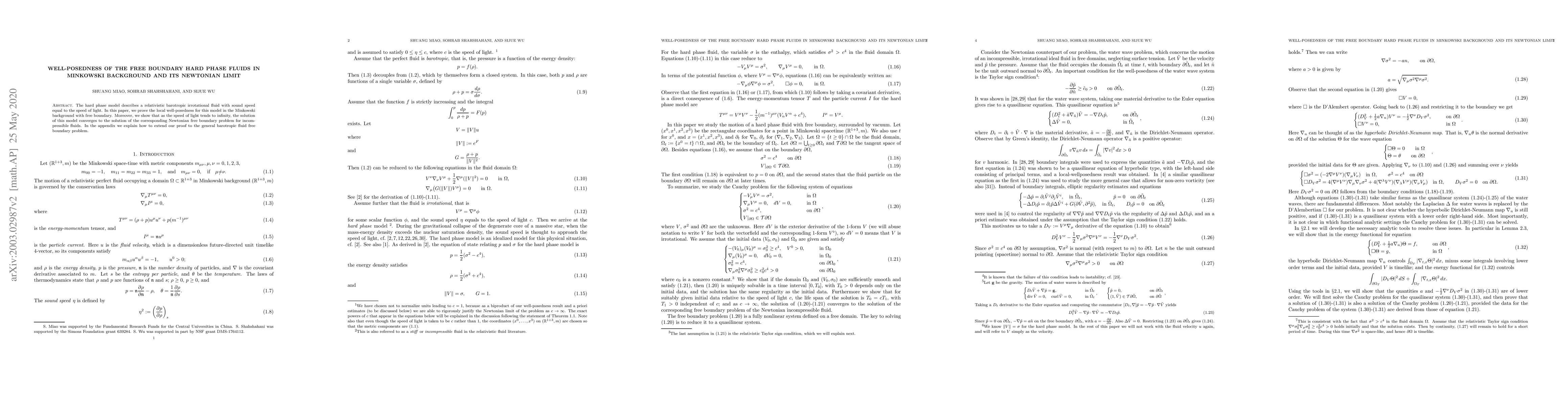 This paper proves local well-posedness for the relativistic hard phase fluid model in Minkowski space with a free boundary and demonstrates its Newtonian limit as the speed of light approaches infinity. The appendix extends the proof to general barotropic fluid free boundary problems.