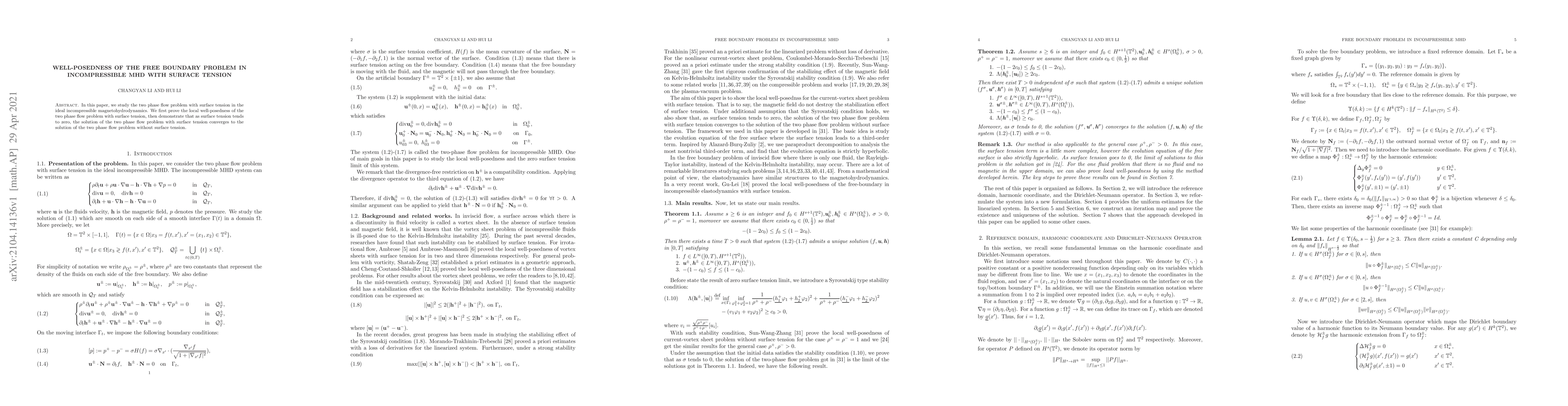 This paper proves local well-posedness for the two-phase flow problem in ideal incompressible magnetohydrodynamics with surface tension and shows that as surface tension approaches zero, the solution converges to that without surface tension.