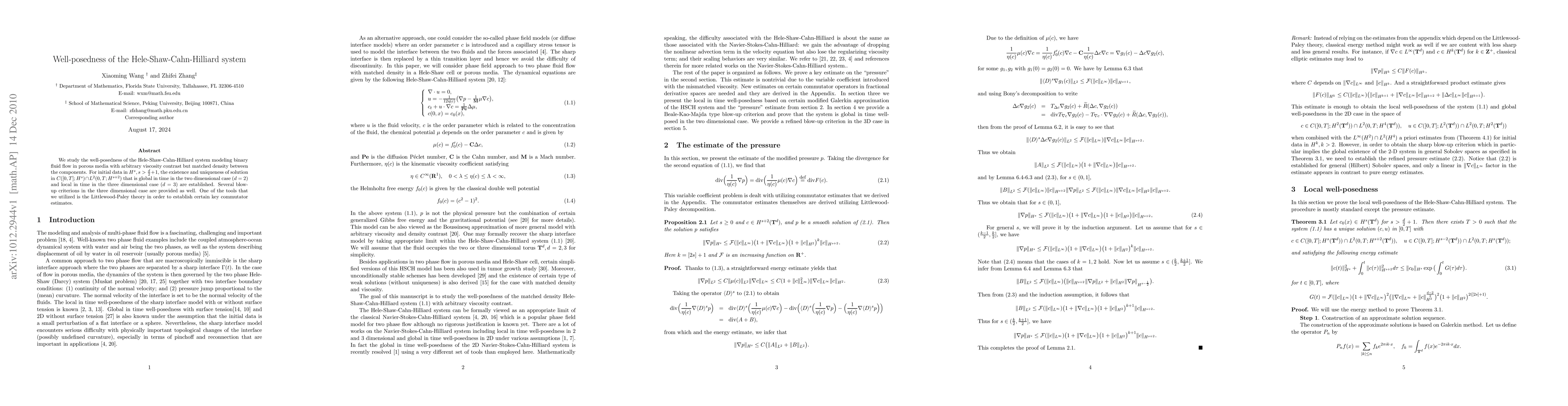 The Hele-Shaw-Cahn-Hilliard system model is well-posed for binary fluid flow in porous media, with global solutions in 2D and local solutions in 3D for certain initial conditions.