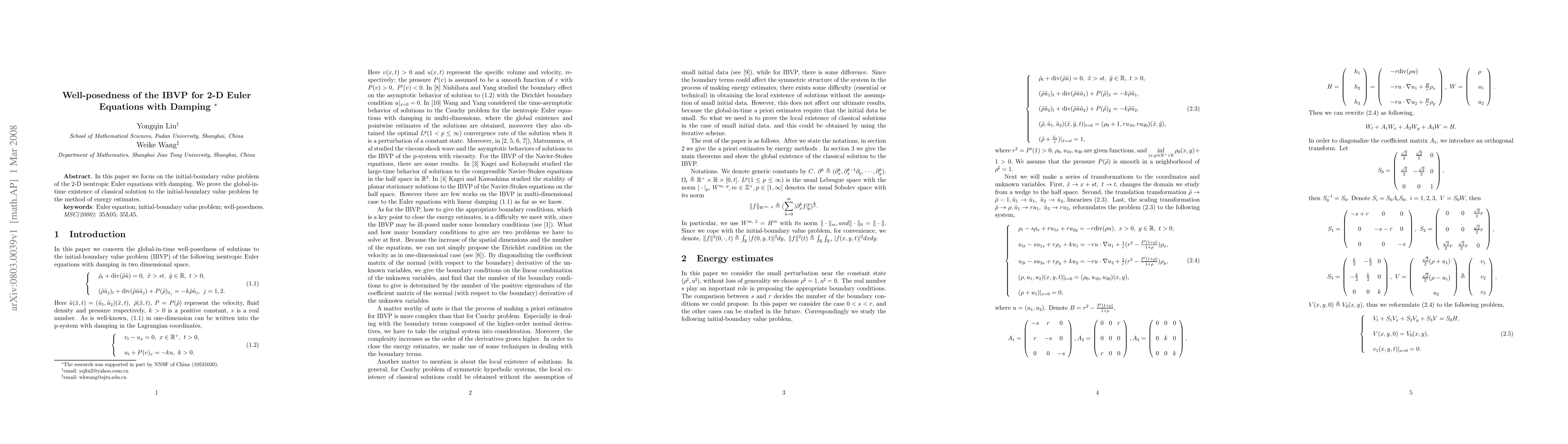This paper proves the global-in-time existence of classical solutions to the 2-D Euler equations with damping using energy estimates.