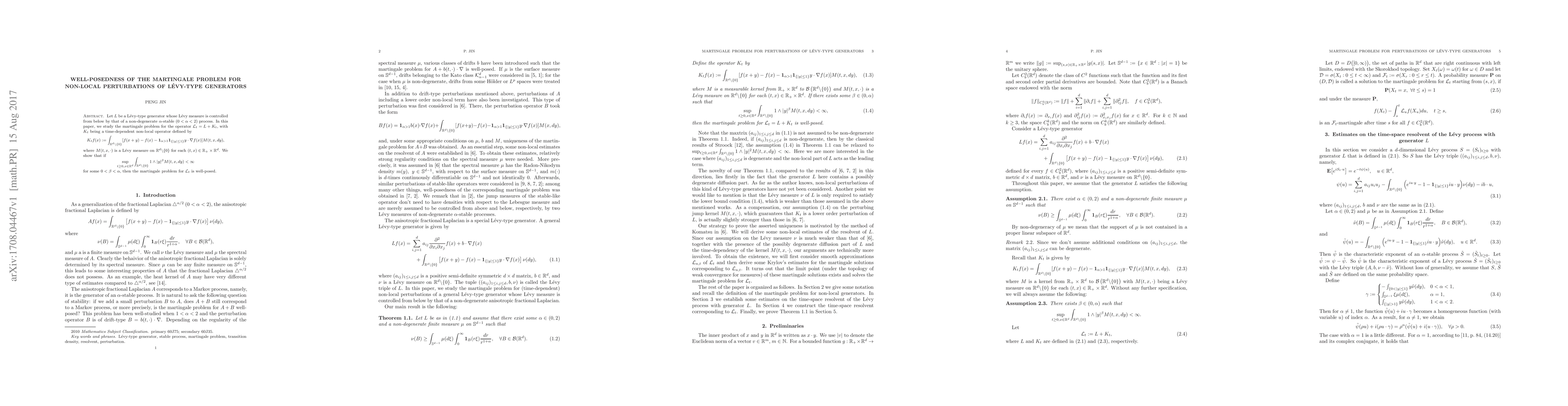 The paper investigates well-posedness of the martingale problem for non-local perturbations of Lévy-type generators with controlled Lévy measure; it finds that a certain condition on the time-dependent non-local operator leads to a well-posed solution.