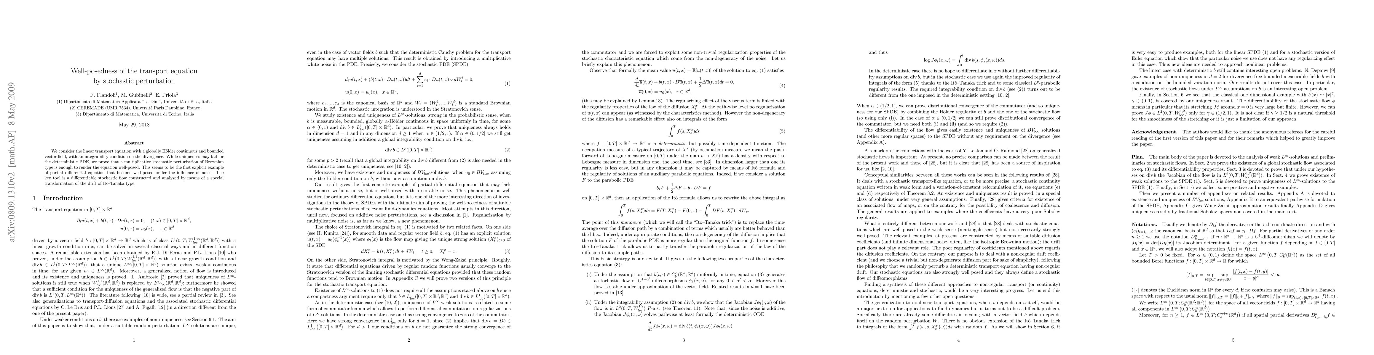 This paper proves that a linear transport equation with a deterministic vector field becomes well-posed when subjected to a stochastic perturbation of Brownian type. The key innovation is the use of a differentiable stochastic flow via an Ito-Tanaka transformation to achieve this result.