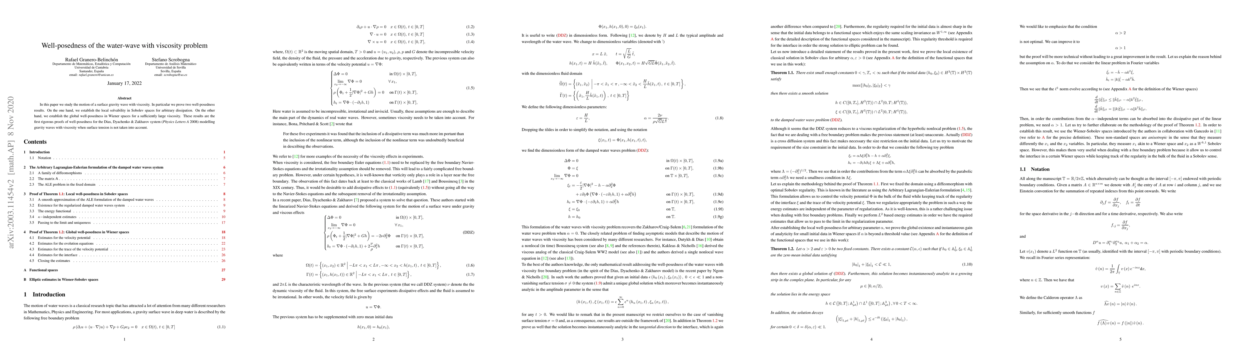 This paper proves local solvability in Sobolev spaces and global well-posedness in Wiener spaces for the viscous water-wave problem, providing the first rigorous proofs for the Dias, Dyachenko & Zakharov system modeling gravity waves with viscosity.