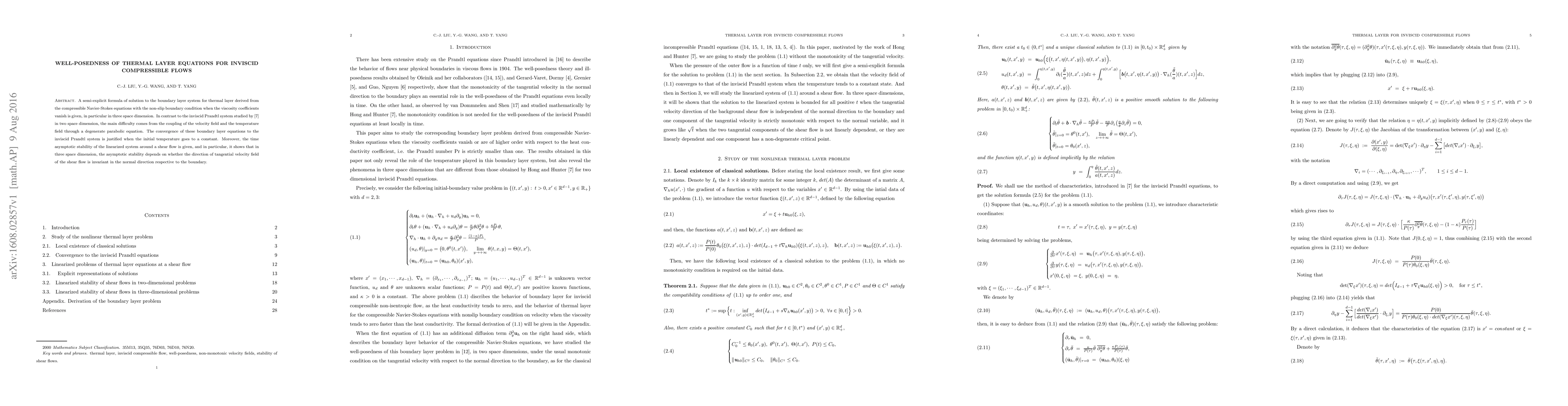 This paper presents a semi-explicit solution for the thermal boundary layer in inviscid compressible flows, derived from the compressible Navier-Stokes equations. It highlights the coupling between velocity and temperature fields and justifies the convergence to the inviscid Prandtl system, while also proving time asymptotic stability dependent on the direction of the tangential velocity field.