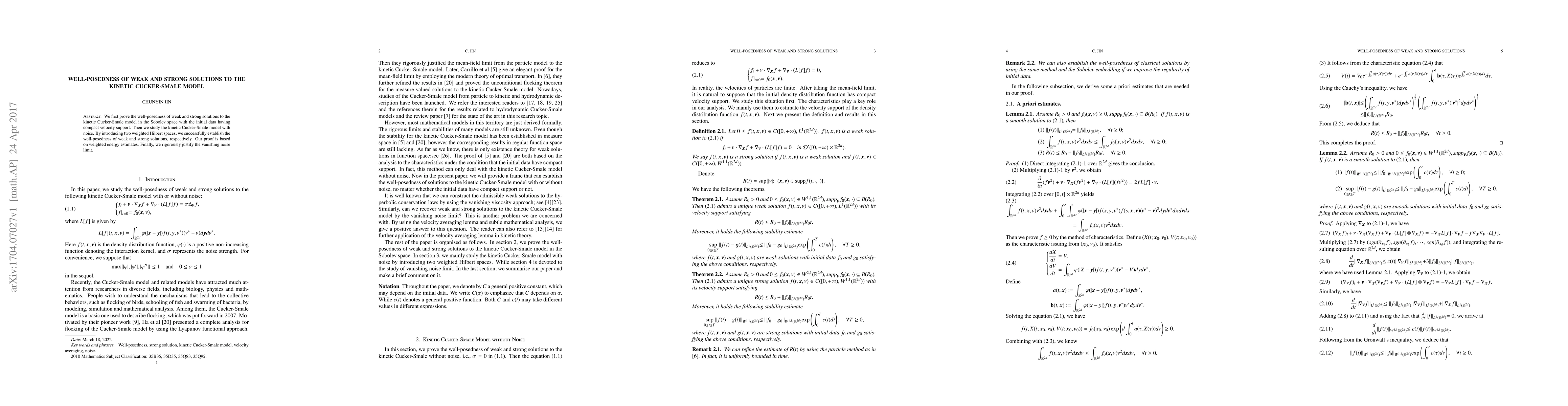 This paper proves the well-posedness of weak and strong solutions for the kinetic Cucker-Smale model in Sobolev spaces, with initial data having compact velocity support. It also establishes well-posedness for the model with noise using weighted Hilbert spaces and weighted energy estimates, and justifies the vanishing noise limit.