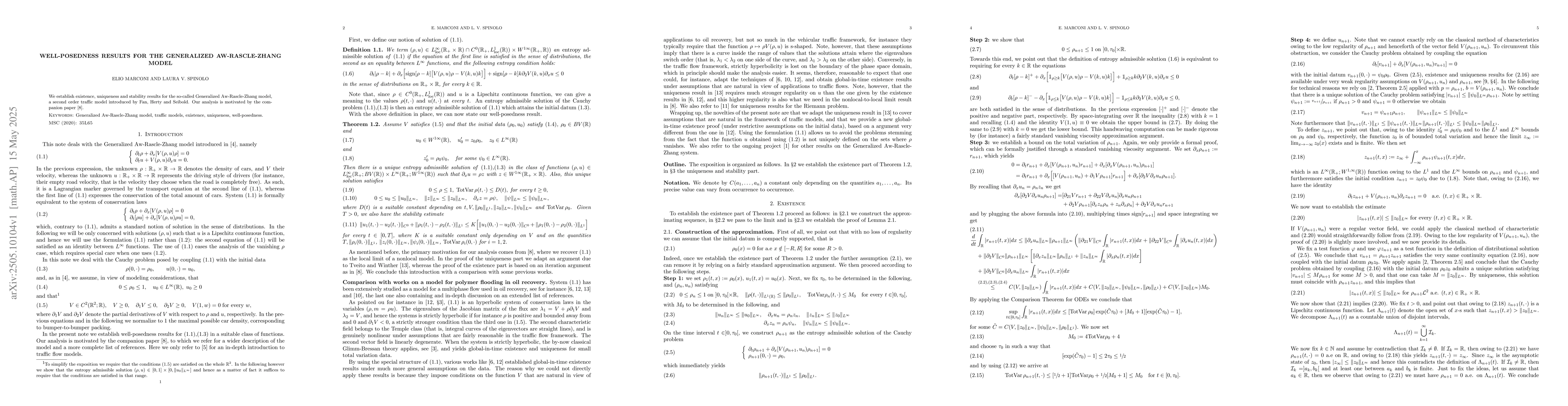 The paper presents a rigorous mathematical analysis for the Generalized Aw-Rascle-Zhang model, providing existence, uniqueness, and stability results.
