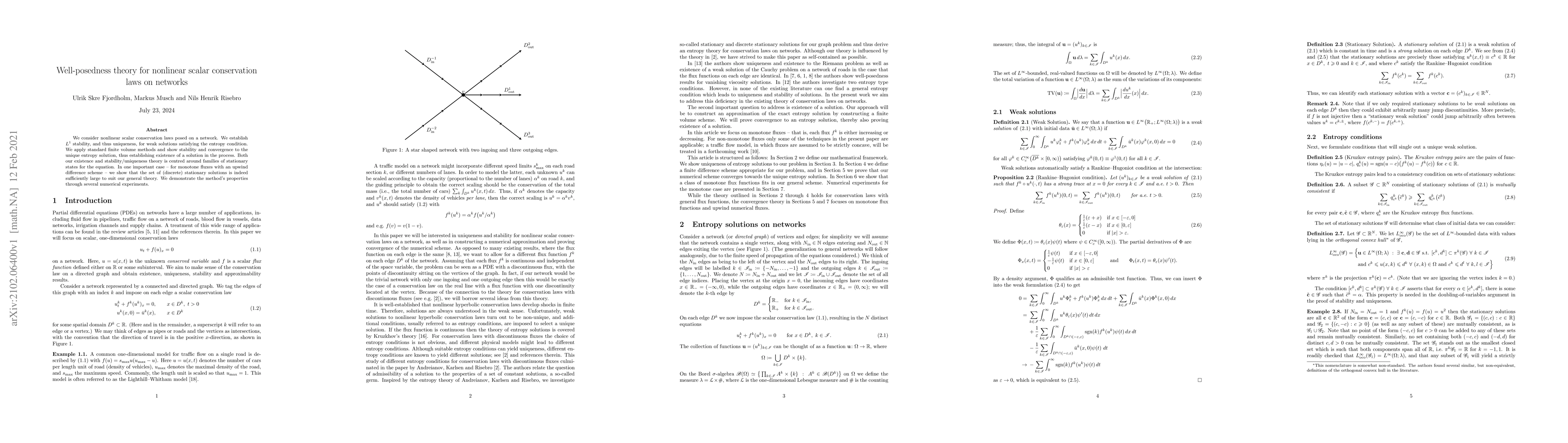 This paper establishes a well-posedness theory for nonlinear scalar conservation laws on networks, proving existence and uniqueness of solutions under certain conditions, and demonstrating the method through numerical experiments.