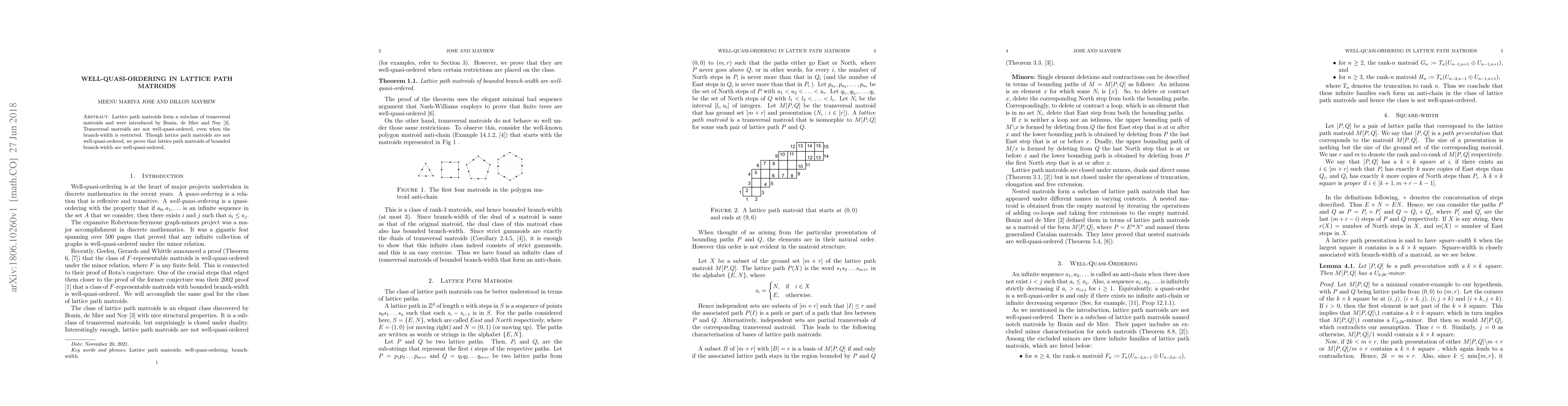 This paper proves that lattice path matroids, a subclass of transversal matroids, are not well-quasi-ordered in general, but those with bounded branch-width are well-quasi-ordered. The study highlights the nuanced behavior of these matroids concerning well-quasi-ordering.