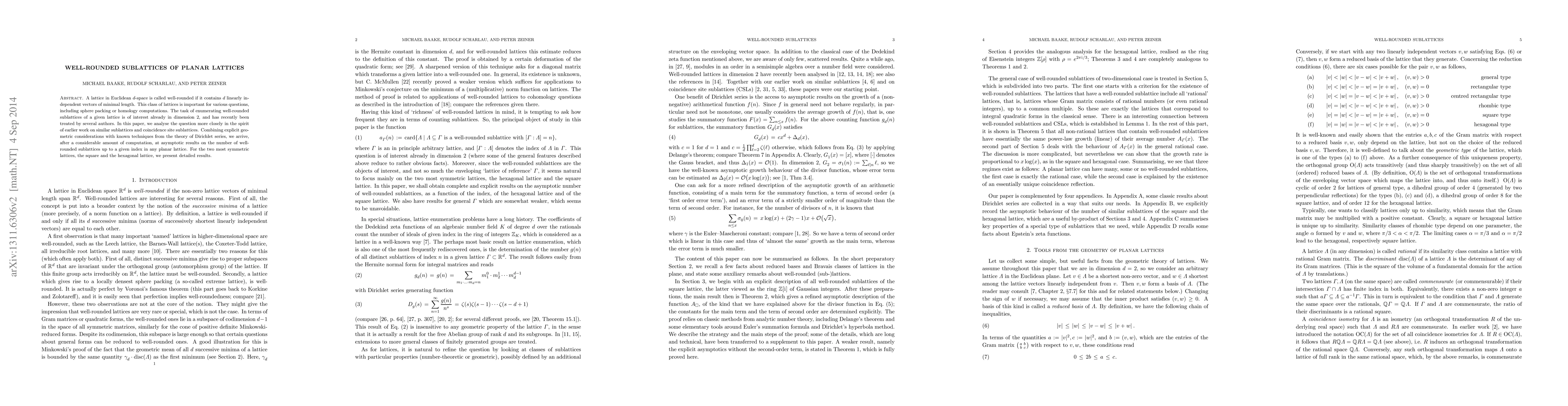 This paper investigates the enumeration of well-rounded sublattices in planar lattices, focusing on those containing $d$ linearly independent vectors of minimal length. It combines geometric insights with Dirichlet series techniques to derive asymptotic results on the number of such sublattices, providing detailed findings for the square and hexagonal lattices.