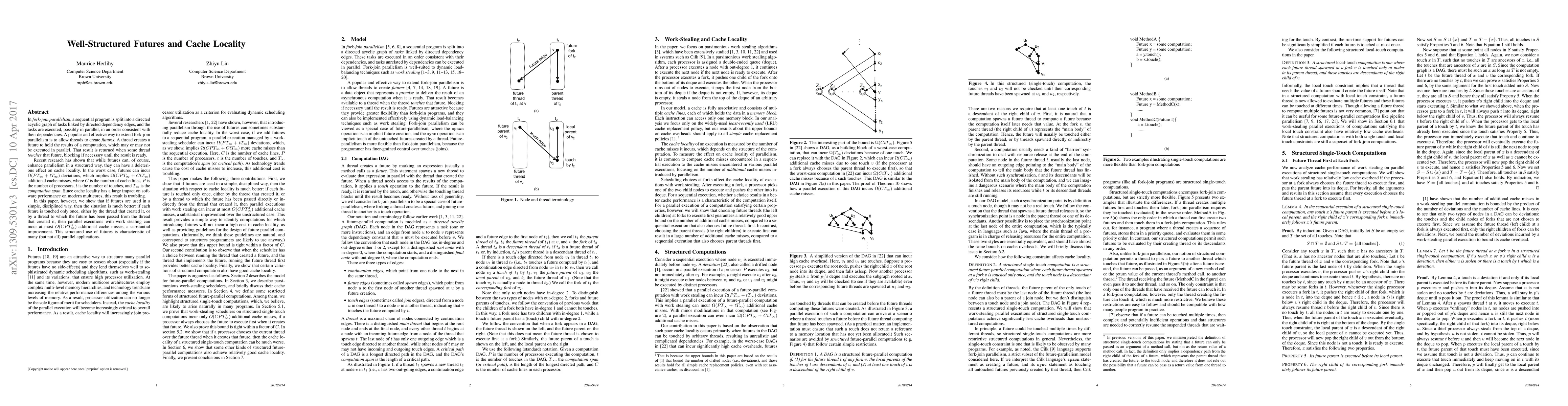 Researchers found that using futures in parallel programming can negatively impact cache locality, but employing a structured approach where each future is touched only once can mitigate this issue, reducing additional cache misses to O(CPT^2_\u00E1).