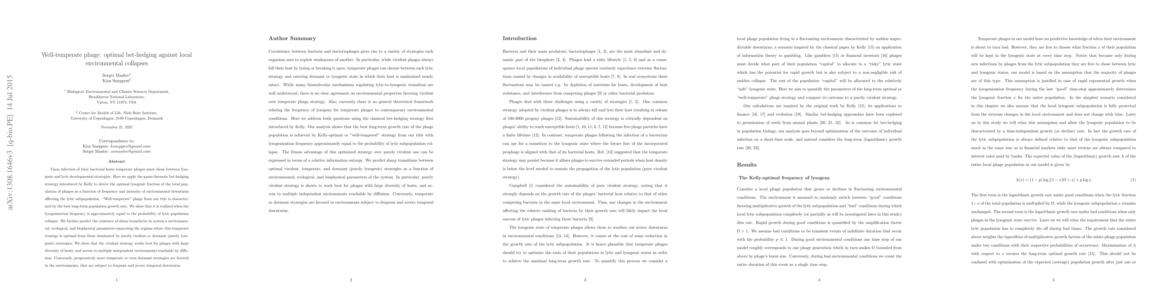 This paper uses game-theoretic bet-hedging to determine the optimal lysogenic fraction for temperate phages, showing that "well-temperate" phages maximize growth when lysogenization frequency matches the probability of lytic collapse. It also predicts distinct environmental conditions favoring either virulent or purely lysogenic strategies.
