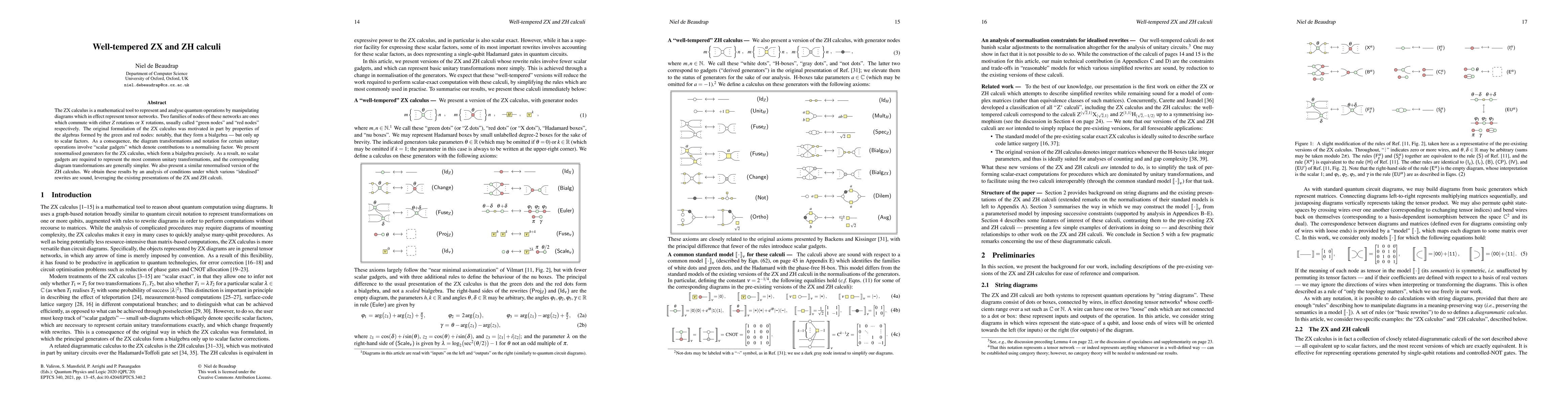 The ZX calculus is a mathematical tool to represent and analyse quantum operations by manipulating diagrams which in effect represent tensor networks. Two families of nodes of these networks are ones which commute with either Z rotations or X rotations, usually called "green nodes" and "red nodes" respectively. The original formulation of the ZX calculus was motivated in part by properties of the algebras formed by the green and red nodes: notably, that they form a bialgebra -- but only up to scalar factors. As a consequence, the diagram transformations and notation for certain unitary operations involve "scalar gadgets" which denote contributions to a normalising factor. We present renormalised generators for the ZX calculus, which form a bialgebra precisely. As a result, no scalar gadgets are required to represent the most common unitary transformations, and the corresponding diagram transformations are generally simpler. We also present a similar renormalised version of the ZH calculus. We obtain these results by an analysis of conditions under which various "idealised" rewrites are sound, leveraging the existing presentations of the ZX and ZH calculi.