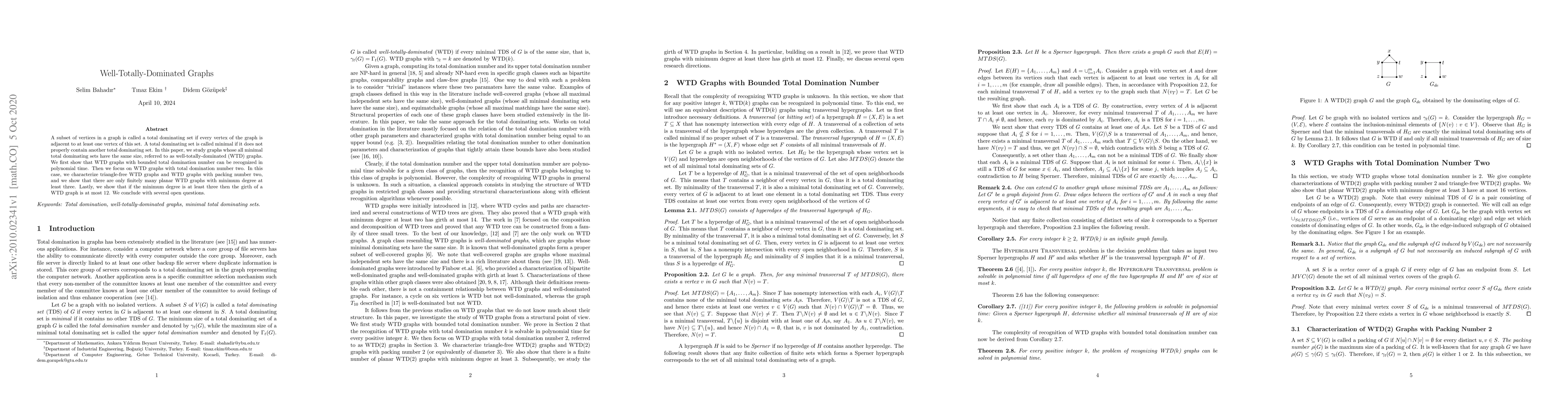 This paper studies graphs where all minimal total dominating sets have the same size, focusing on properties such as bounded total domination number, triangle-free graphs, planar graphs with minimum degree at least three, and implications for graph girth.