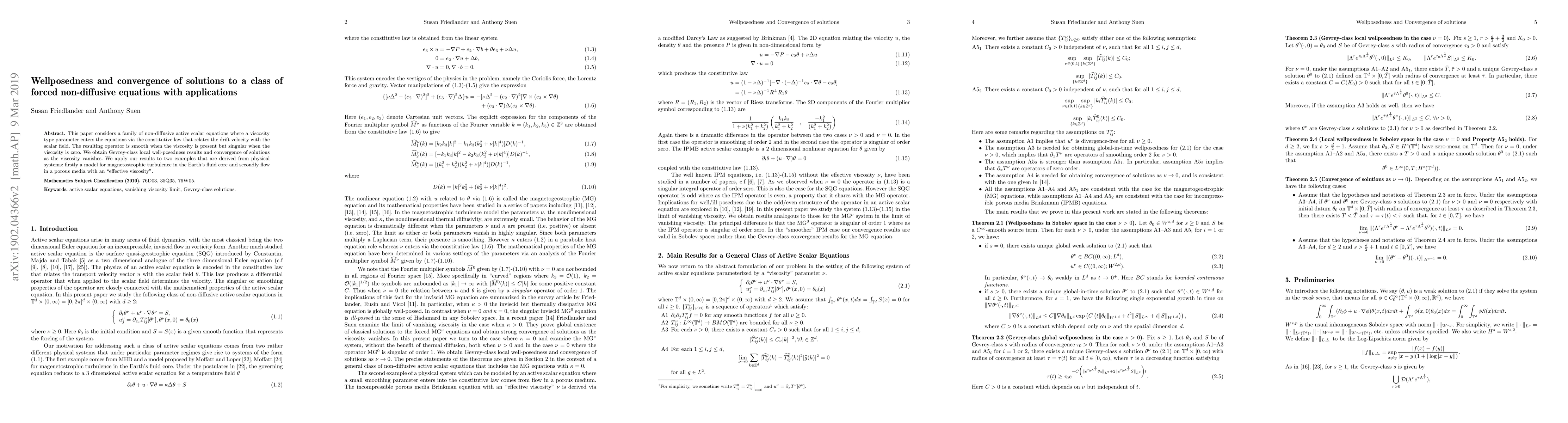 This paper establishes Gevrey-class local well-posedness and solution convergence for a class of non-diffusive active scalar equations with a viscosity parameter, and applies the results to models of magnetostrophic turbulence and flow in porous media.