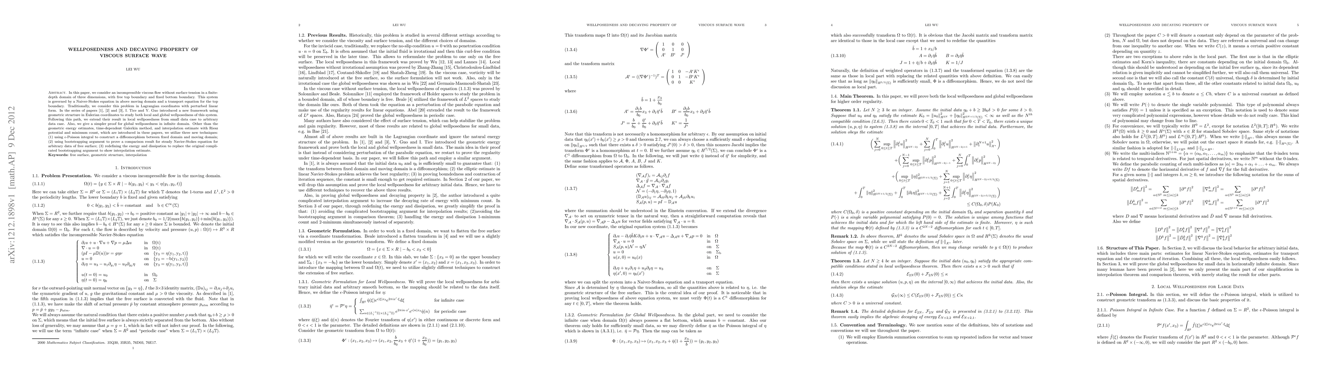 In this paper, we consider an incompressible viscous flow without surface tension in a finite-depth domain of three dimensions, with free top boundary and fixed bottom boundary. This system is governed by a Naiver-Stokes equation in above moving domain and a transport equation for the top boundary. Traditionally, we consider this problem in Lagrangian coordinates with perturbed linear form. In the series of papers [1], [2] and [3], I. Tice and Y. Guo introduced a new framework using geometric structure in Eulerian coordinates to study both local and global wellposedness of this system. Following this path, we extend their result in local wellposedness from small data case to arbitrary data case. Also, we give a simpler proof for global wellposedness in infinite domain. Other than the geometric energy estimates, time-dependent Galerkin method, and interpolation estimate with Riesz potential and minimum count, which are introduced in these papers, we utilize three new techniques: (1) using \epsilon-Poisson integral to construct a diffeomorphism between fixed domain and moving domain; (2) using bootstrapping argument to prove a comparison result for steady Navier-Stokes equation for arbitrary data of free surface; (3) redefining the energy and dissipation to replace the original complicated bootstrapping argument to show interpolation estimate.