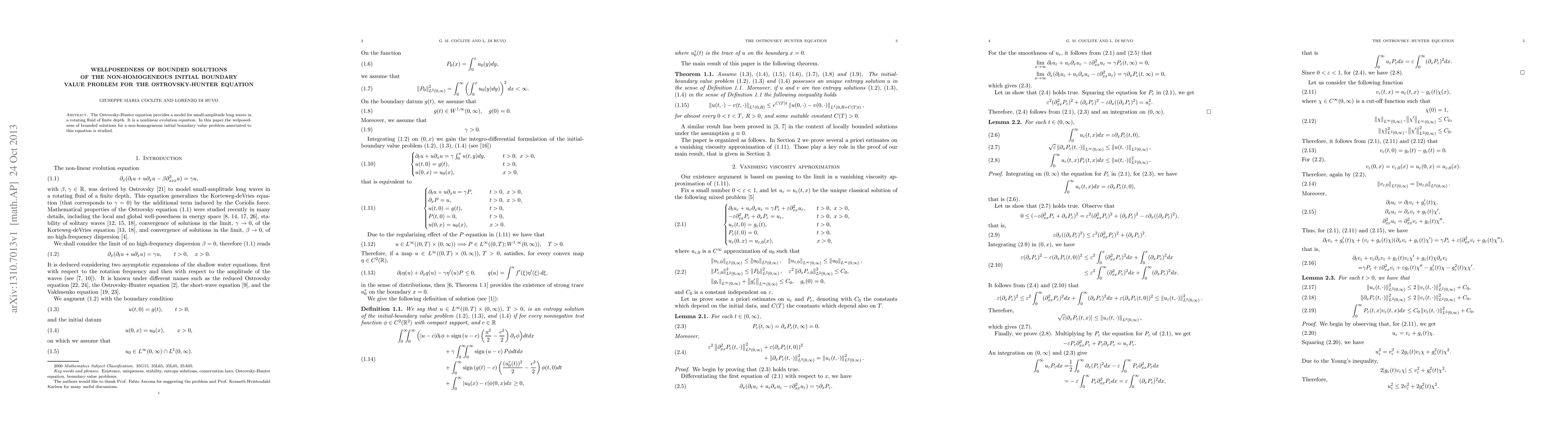 The Ostrovsky-Hunter equation provides a model for small-amplitude long waves in a rotating fluid of finite depth. It is a nonlinear evolution equation. In this paper the welposed- ness of bounded solutions for a non-homogeneous initial boundary value problem associated to this equation is studied.