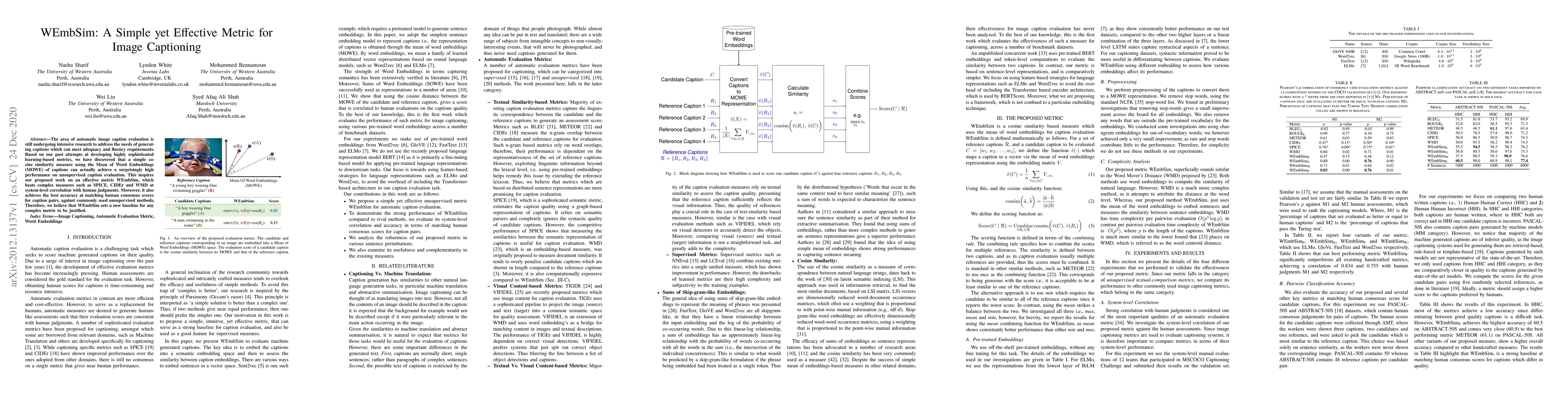 The area of automatic image caption evaluation is still undergoing intensive research to address the needs of generating captions which can meet adequacy and fluency requirements. Based on our past attempts at developing highly sophisticated learning-based metrics, we have discovered that a simple cosine similarity measure using the Mean of Word Embeddings(MOWE) of captions can actually achieve a surprisingly high performance on unsupervised caption evaluation. This inspires our proposed work on an effective metric WEmbSim, which beats complex measures such as SPICE, CIDEr and WMD at system-level correlation with human judgments. Moreover, it also achieves the best accuracy at matching human consensus scores for caption pairs, against commonly used unsupervised methods. Therefore, we believe that WEmbSim sets a new baseline for any complex metric to be justified.
