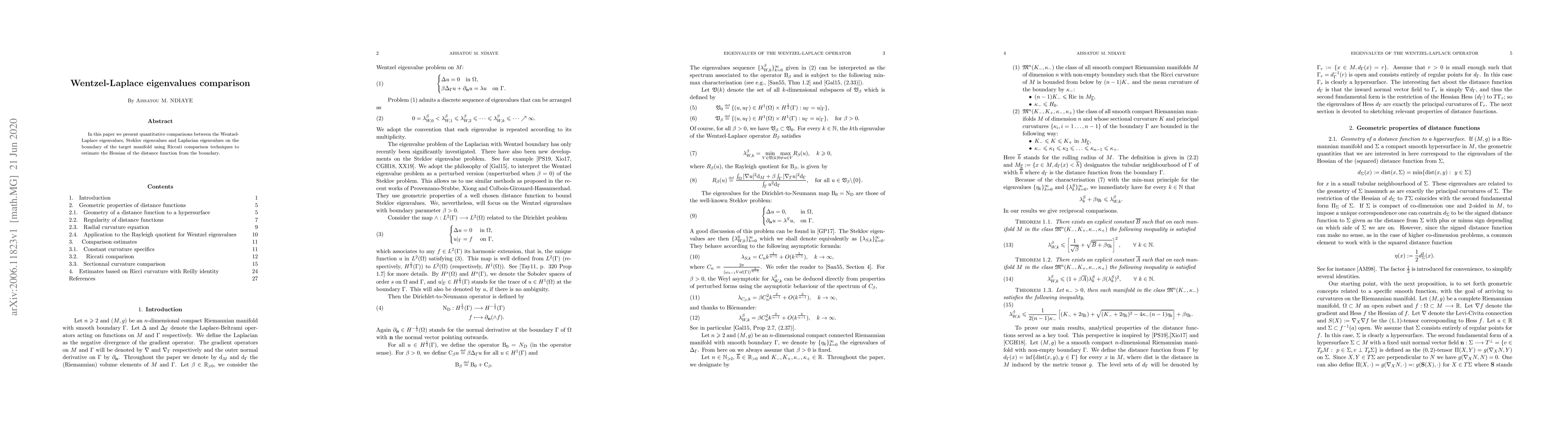 This paper quantitatively compares Wentzel-Laplace eigenvalues, Steklov eigenvalues, and Laplacian eigenvalues on a manifold's boundary using Riccati comparison techniques to estimate the Hessian of the distance function from the boundary. The analysis provides insights into the relationships between these eigenvalue types.