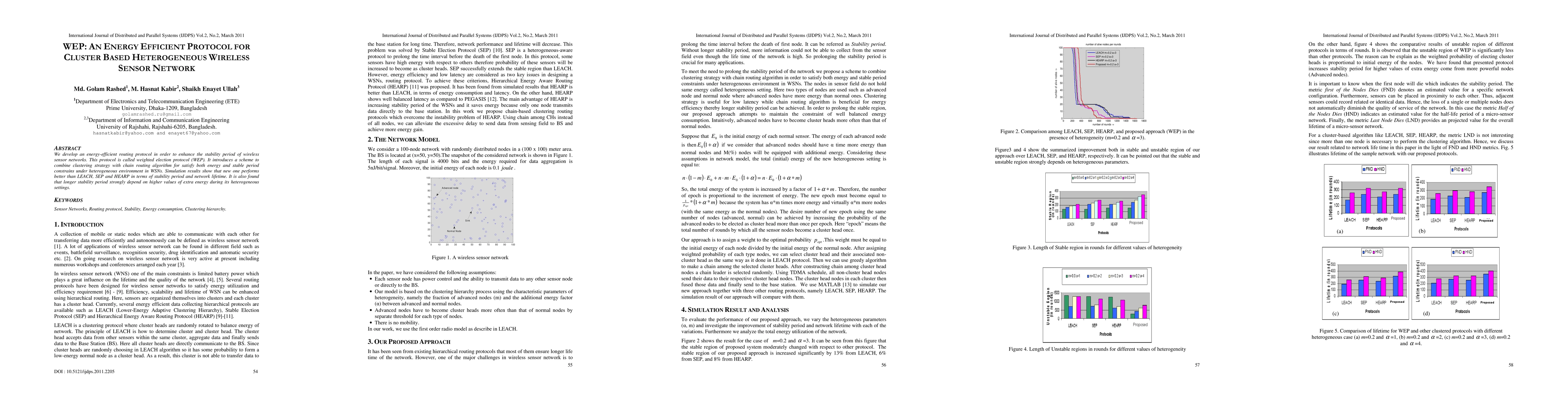 The paper proposes a weighted election protocol (WEP) to enhance the stability period of heterogeneous wireless sensor networks by combining clustering with chain routing. Simulation results indicate WEP outperforms LEACH, SEP, and HEARP in stability period and network lifetime, with longer stability periods correlating with higher extra energy in heterogeneous settings.
