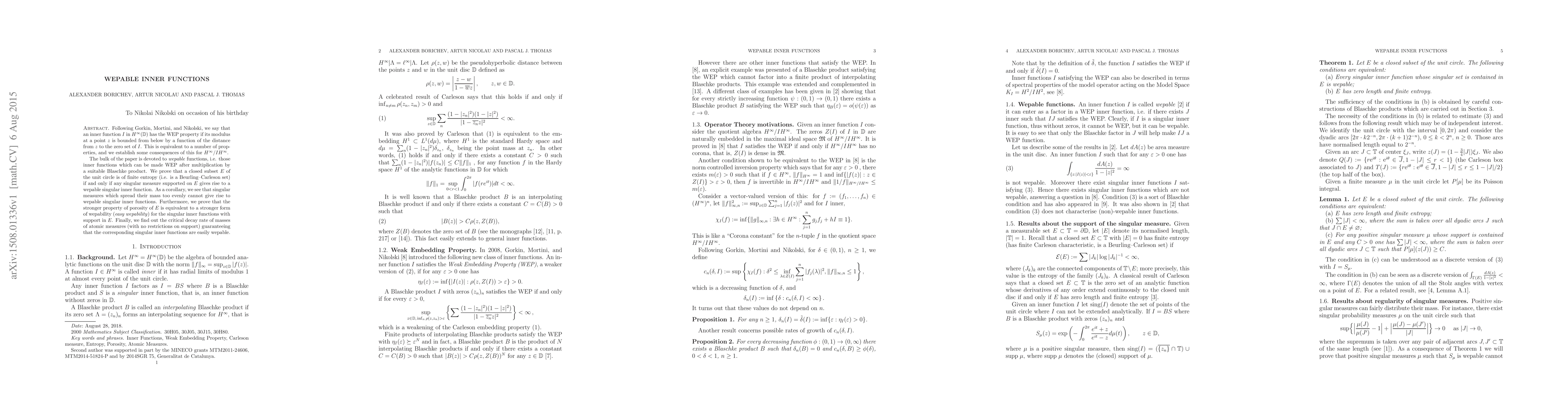 The paper introduces and develops the concept of 'wepable' inner functions and their relationship to Blaschke products, extending the understanding of inner functions with the WEP property.