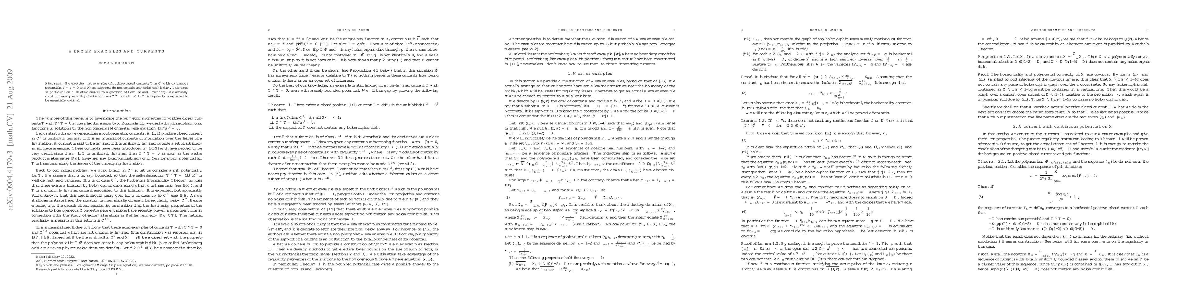 In this paper we give the first examples of positive closed currents in $\mathbb{C}^2$ with continuous potentials, vanishing self-intersection, and which are not laminar. More precisely, they are supported on sets "without analytic structure". The result is mostly interesting when the potential has regularity close to $C^2$, because laminarity is expected to hold in that case. We actually construct examples which are $C^{1,\alpha}$ for all $\alpha<1$.