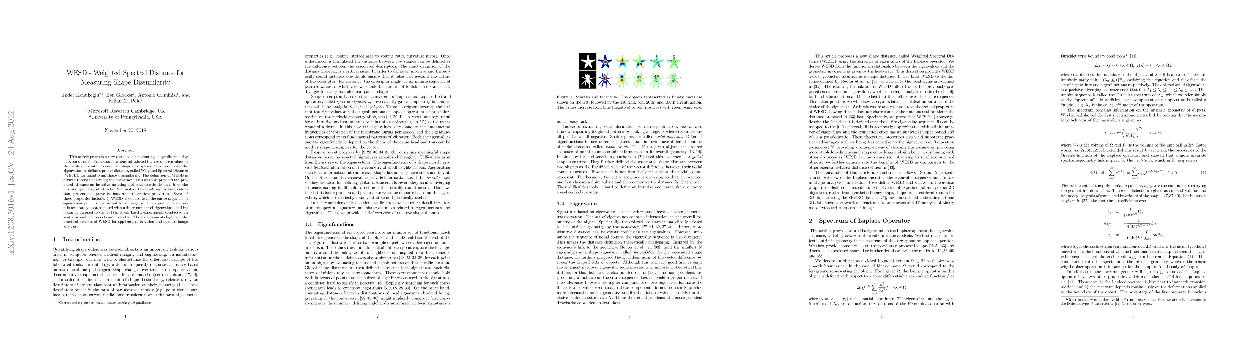 This article presents a new distance for measuring shape dissimilarity between objects. Recent publications introduced the use of eigenvalues of the Laplace operator as compact shape descriptors. Here, we revisit the eigenvalues to define a proper distance, called Weighted Spectral Distance (WESD), for quantifying shape dissimilarity. The definition of WESD is derived through analysing the heat-trace. This analysis provides the proposed distance an intuitive meaning and mathematically links it to the intrinsic geometry of objects. We analyse the resulting distance definition, present and prove its important theoretical properties. Some of these properties include: i) WESD is defined over the entire sequence of eigenvalues yet it is guaranteed to converge, ii) it is a pseudometric, iii) it is accurately approximated with a finite number of eigenvalues, and iv) it can be mapped to the [0,1) interval. Lastly, experiments conducted on synthetic and real objects are presented. These experiments highlight the practical benefits of WESD for applications in vision and medical image analysis.