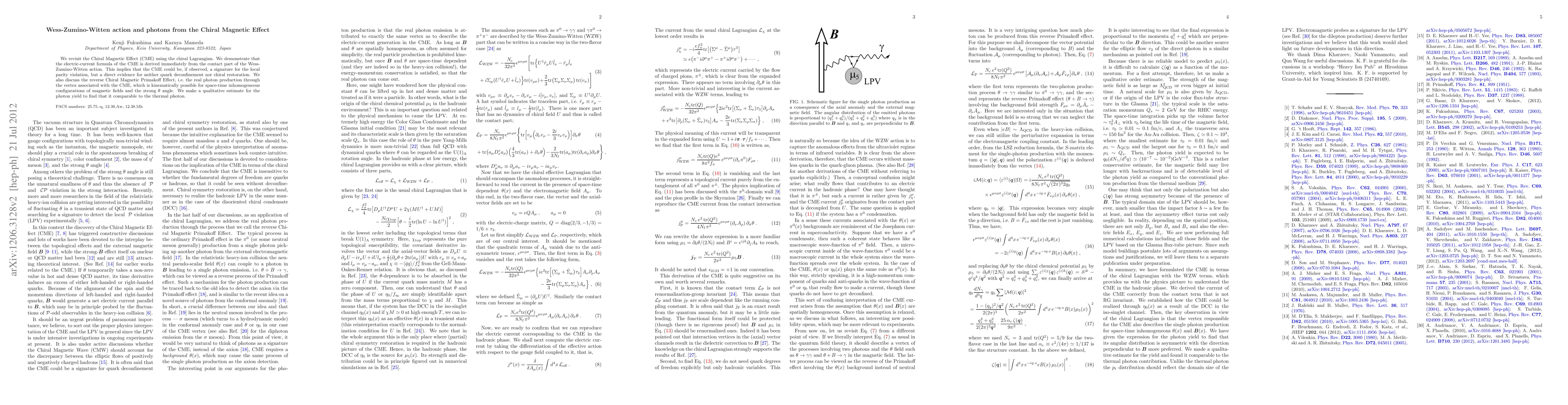 This paper explores the Chiral Magnetic Effect (CME) through the Wess-Zumino-Witten action, showing that it signifies local parity violation but not quark deconfinement or chiral restoration. It also investigates the reverse Primakoff effect, estimating photon production in inhomogeneous magnetic fields.