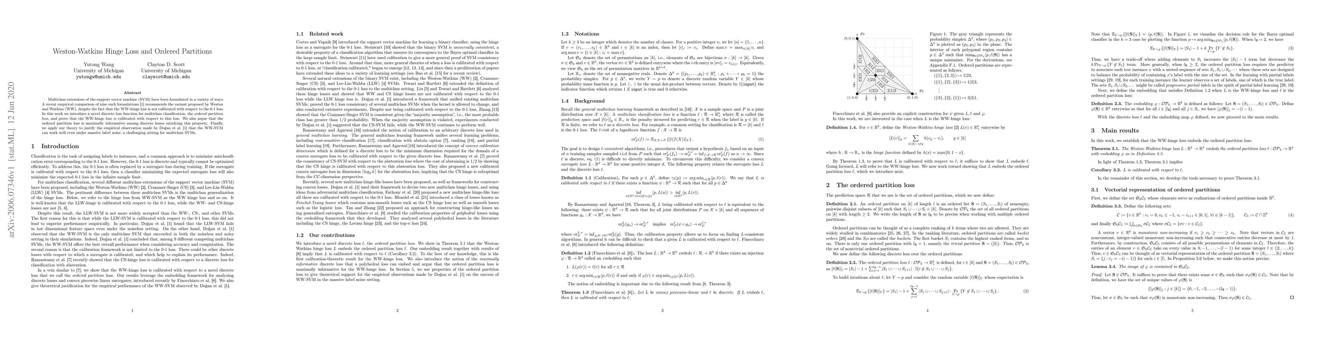 This paper introduces a new discrete loss function, the ordered partition loss, and demonstrates that the Weston-Watkins hinge loss is calibrated with respect to it. It argues that this new loss is maximally informative among discrete losses with this property and uses the theory to explain the effectiveness of WW-SVM under label noise.