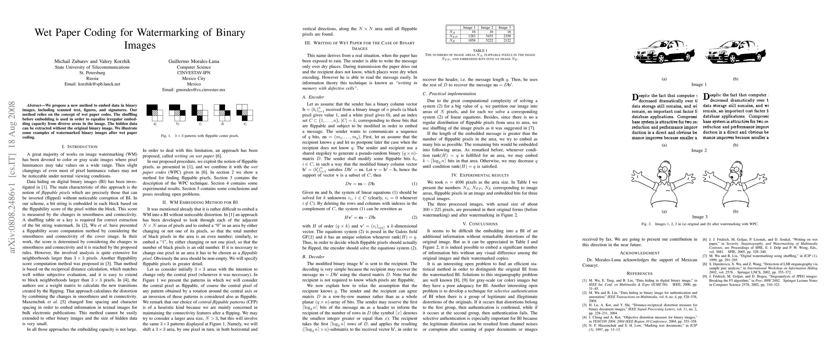 Researchers propose a new method to hide data in binary images using wet paper coding, allowing for secure storage of sensitive information.