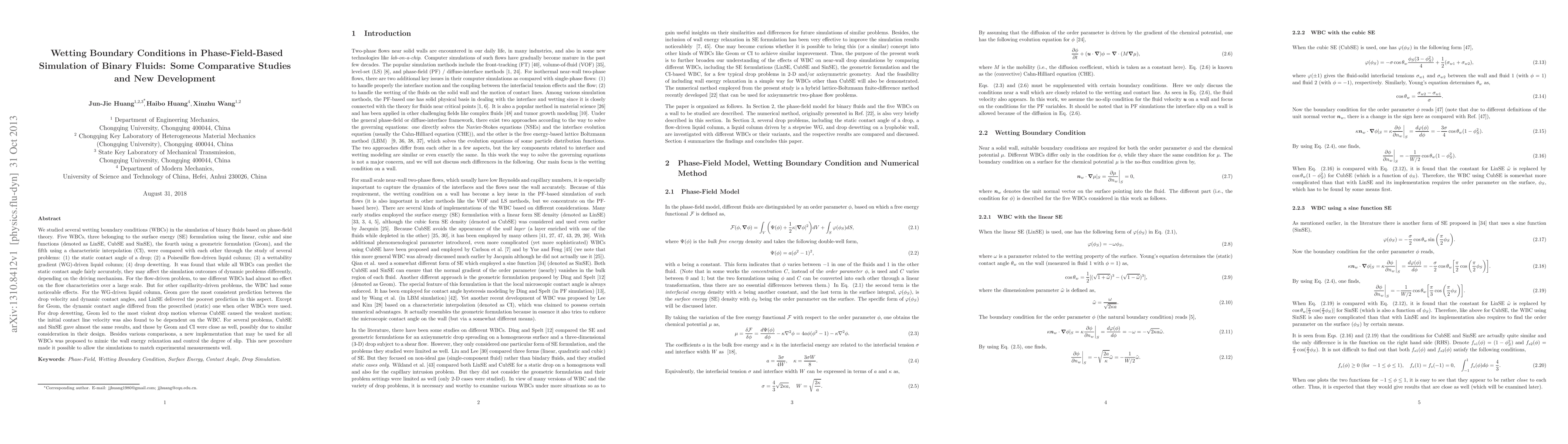 We studied several wetting boundary conditions (WBCs) in the simulation of binary fluids based on phase-field theory. Five WBCs, three belonging to the surface energy (SE) formulation using the linear, cubic and sine functions (denoted as LinSE, CubSE and SinSE), the fourth using a geometric formulation (Geom), and the fifth using a characteristic interpolation (CI), were compared with each other through the study of several problems: (1) the static contact angle of a drop; (2) a Poiseuille flow-driven liquid column; (3) a wettability gradient (WG)-driven liquid column; (4) drop dewetting. It was found that while all WBCs can predict the static contact angle fairly accurately, they may affect the simulation outcomes of dynamic problems differently, depending on the driving mechanism. For the flow-driven problem, to use different WBCs had almost no effect on the flow characteristics over a large scale. But for other capillarity-driven problems, the WBC had some noticeable effects. For the WG-driven liquid column, Geom gave the most consistent prediction between the drop velocity and dynamic contact angles, and LinSE delivered the poorest prediction in this aspect. Except for Geom, the dynamic contact angle differed from the prescribed (static) one when other WBCs were used. For drop dewetting, Geom led to the most violent drop motion whereas CubSE caused the weakest motion; the initial contact line velocity was also found to be dependent on the WBC. For several problems, CubSE and SinSE gave almost the same results, and those by Geom and CI were close as well, possibly due to similar consideration in their design. Besides various comparisons, a new implementation that may be used for all WBCs was proposed to mimic the wall energy relaxation and control the degree of slip. This new procedure made it possible to allow the simulations to match experimental measurements well.