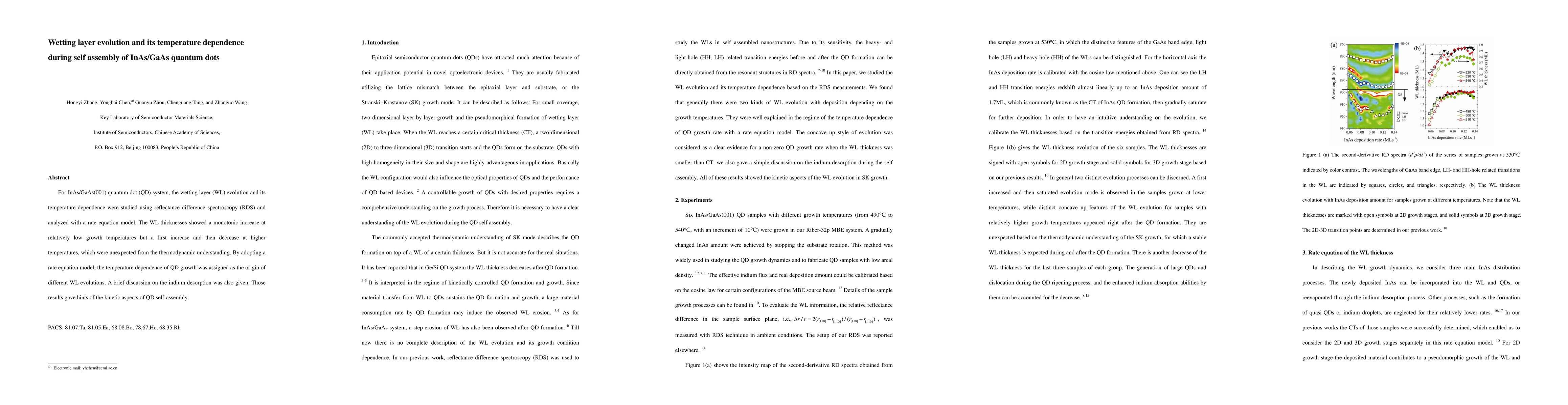 This paper investigates the evolution of the wetting layer in InAs/GaAs quantum dots using reflectance difference spectroscopy and a rate equation model, revealing unexpected temperature-dependent thickness changes. The study attributes these variations to the temperature dependence of quantum dot growth and discusses indium desorption, highlighting kinetic aspects of quantum dot self-assembly.