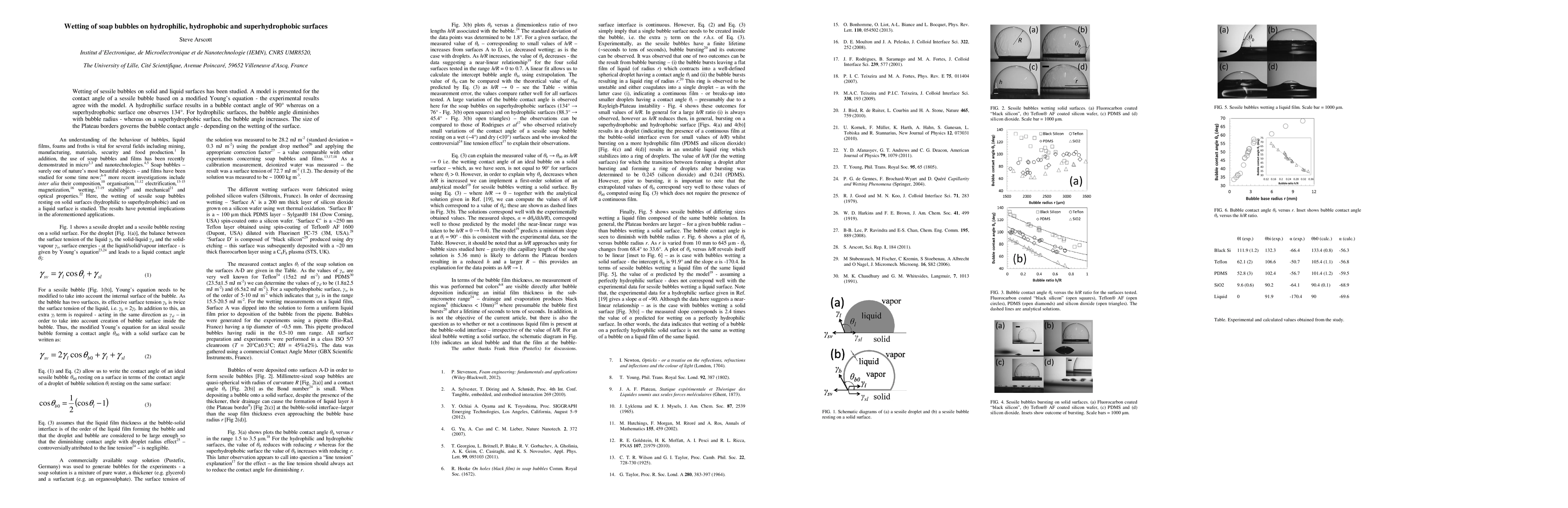 Wetting of sessile bubbles on solid and liquid surfaces has been studied. A model is presented for the contact angle of a sessile bubble based on a modified Young equation - the experimental results agree with the model. A hydrophilic surface results in a bubble contact angle of 90 deg whereas on a superhydrophobic surface one observes 134 deg. For hydrophilic surfaces, the bubble angle diminishes with bubble radius - whereas on a superhydrophobic surface, the bubble angle increases. The size of the Plateau borders governs the bubble contact angle - depending on the wetting of the surface.