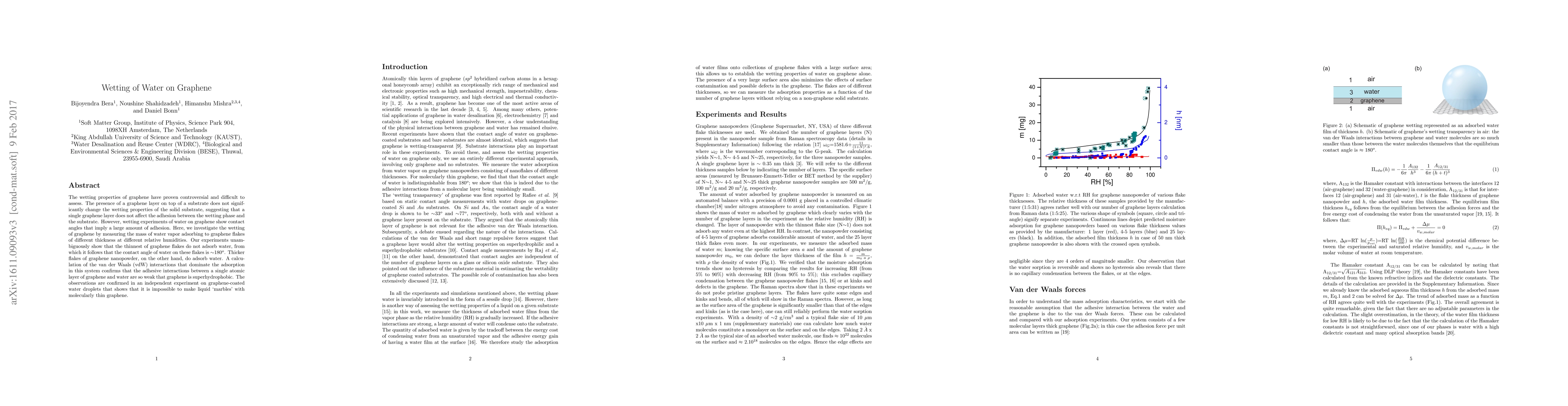 This study presents novel experimental results on the water adsorption properties of graphene flakes, which challenges existing theories and provides new insights into the behavior of this material.